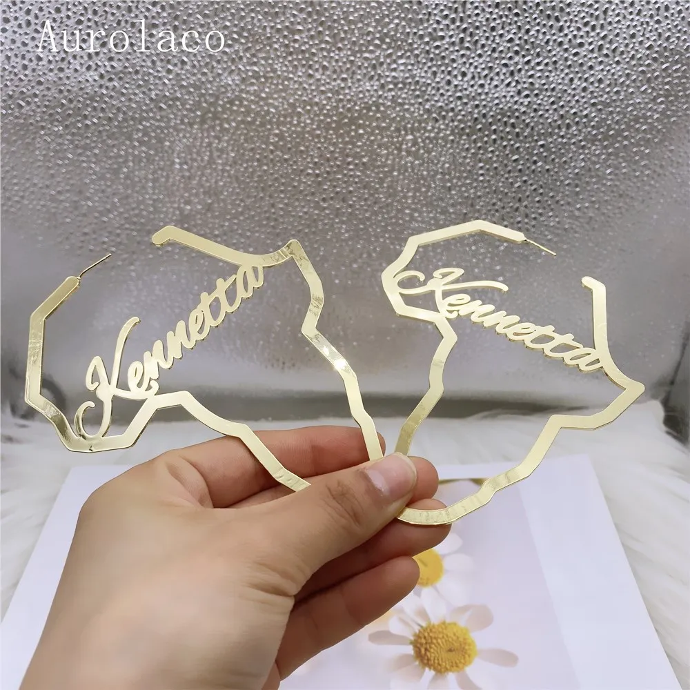 Африканские серьги AurolaCo, индивидуальные именные серьги, индивидуальные серьги-гвоздики, индивидуальные серьги из нержавеющей стали для женщин, подарок
