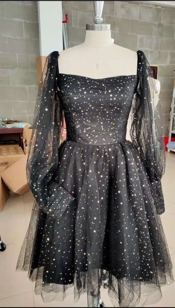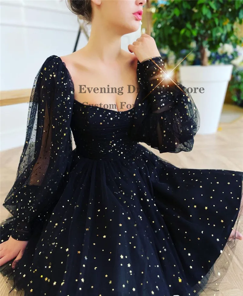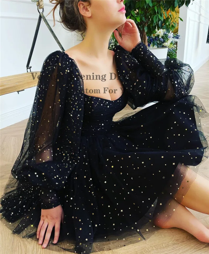 Женское вечернее платье из тюля, с пышными длинными рукавами, до колен, Verngo, 2021