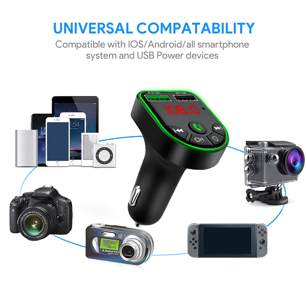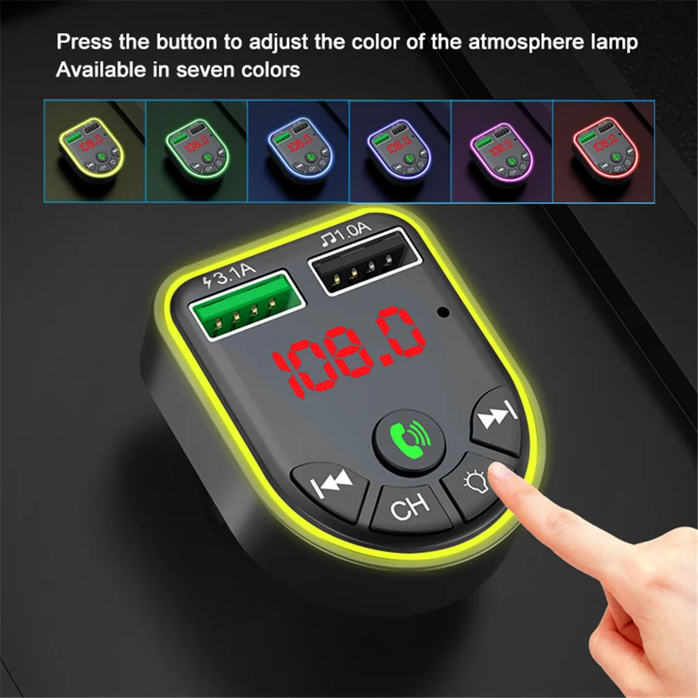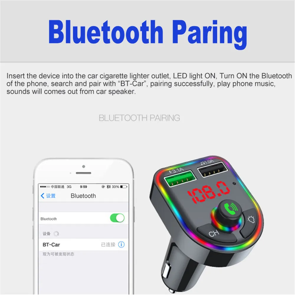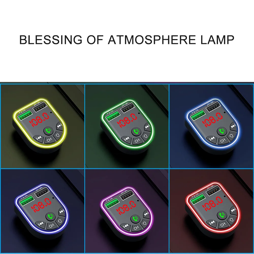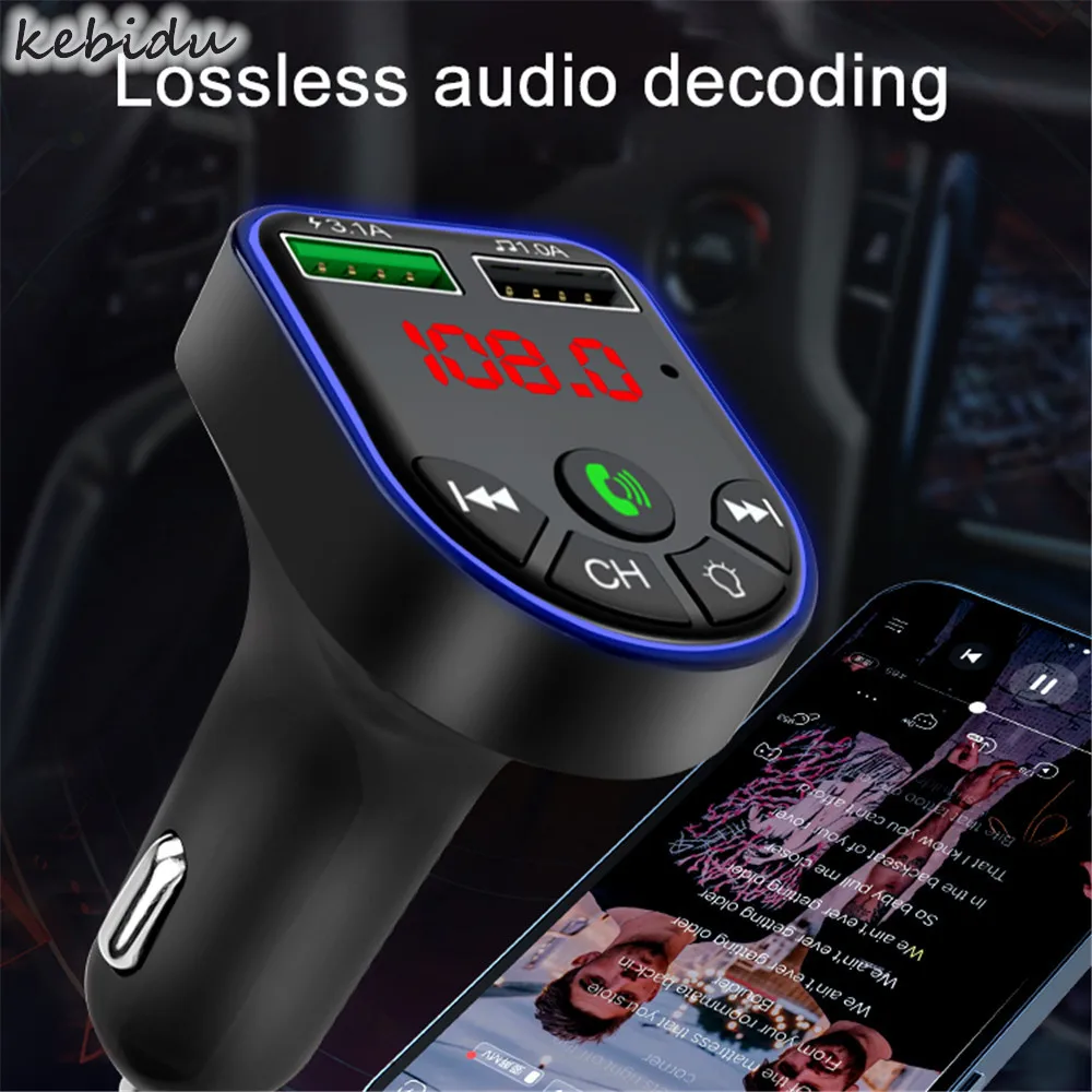Kebidu Новый окружающий светильник Bluetooth 5,0 FM передатчик Автомобильный MP3 плеер беспроводной громкой связи аудио приемник USB быстрая зарядка TF U диск воспроизведение для дропшиппинг/оптовая продажа Лидер продаж