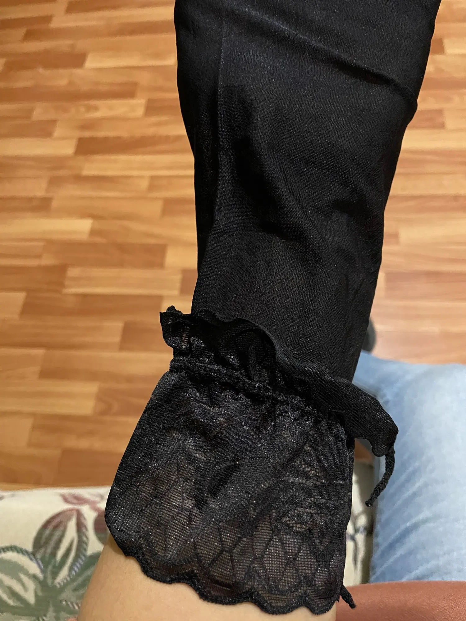 товар заказал подруге. рост 170 см. стройная. все супер. кружево и длинна. все отлично. материал приятный плотный . качество супер. на кружеве две полоски селикона, держат хорошо. я доволен, подруга в восторге. не жаль потраченной суммы.