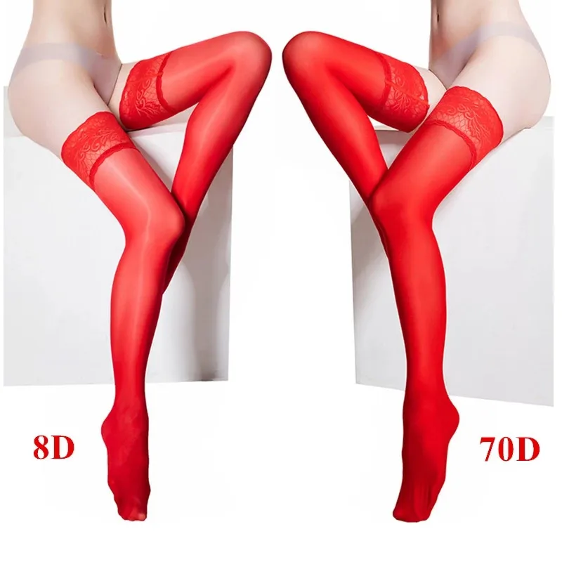 Масляные блестящие сексуальные чулки для женщин кружевные высокие чулки до бедра, черные, красные, белые, кофейные, серые, длинные шелковые чулки с силиконом