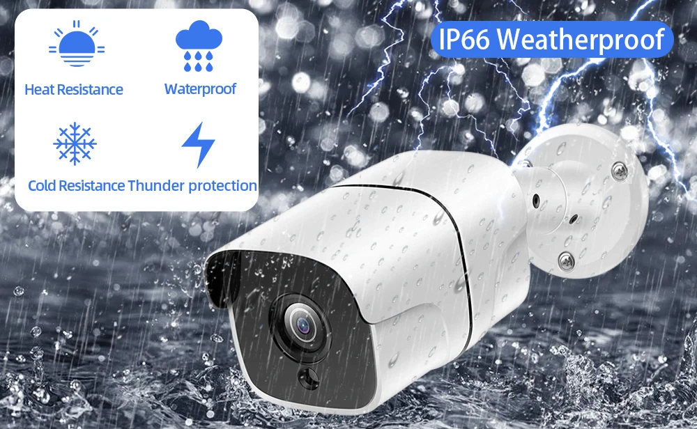 Используйте их в качестве наружных камер или внутренних камер, так как они построены жестко, чтобы выдерживать любую погоду: дождь, снег, пыль и жаркие дни. С защитой от атмосферных воздействий IP66 и кабелями, проходящими через подставку для дополнительной защиты, гарантируем, что вы сможете ответить на их производительность, день в день. Наша камера принимает сверхмощный металлический корпус Профессиональный IP66 Всепогодный, обеспечивая стабильную производительность как внутри, так и снаружи.