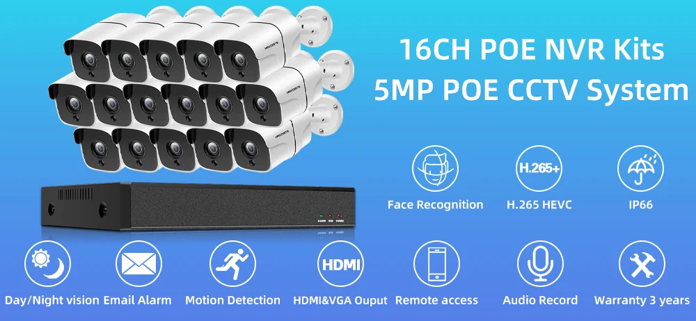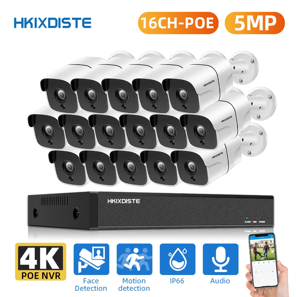 Система видеонаблюдения H.265, 16 каналов, 5 МП, 4K HD, POE, NVR, ИК IP-камера с записью звука на улице, комплект видеонаблюдения P2P, жесткий диск 4 ТБ
