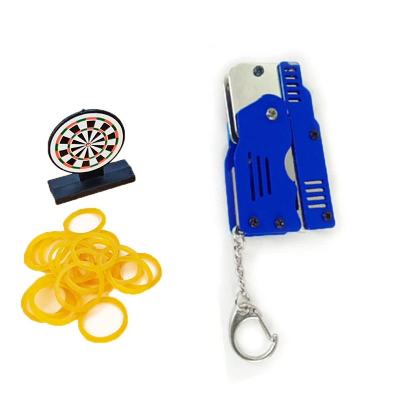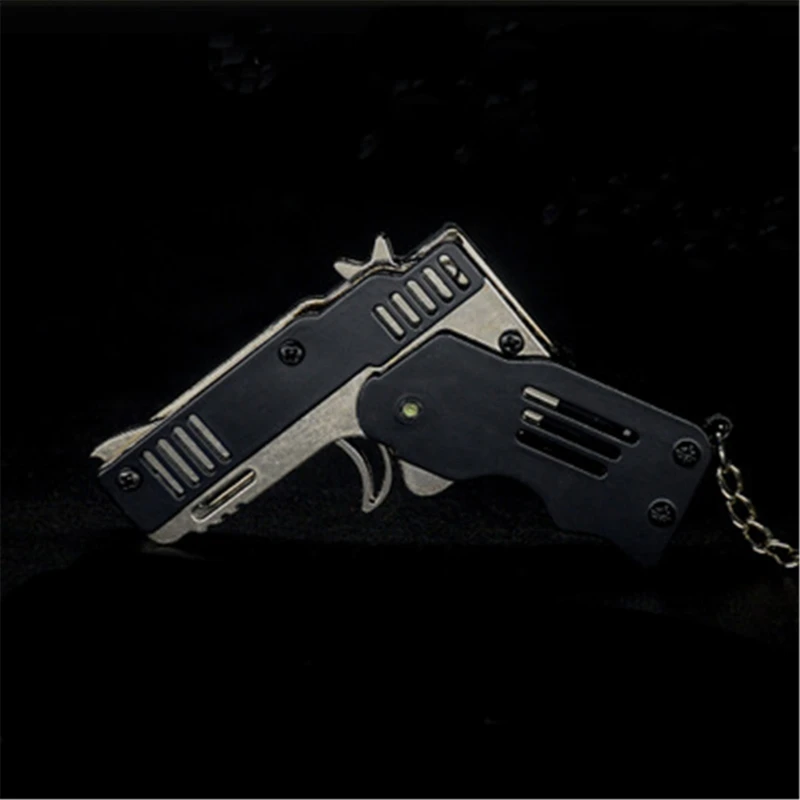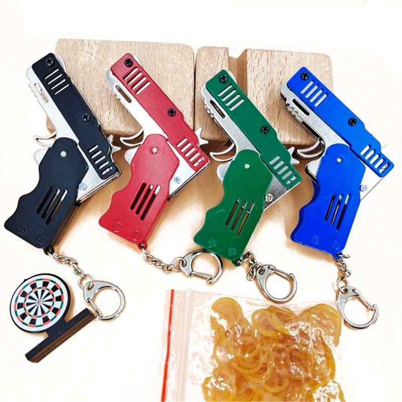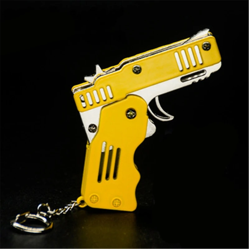 Цветной металлический мини-пистолет из цинкового сплава, можно сложить в качестве кольца для ключей, Детская Подарочная игрушка, шесть вспышек резинового Игрушечного Пистолета