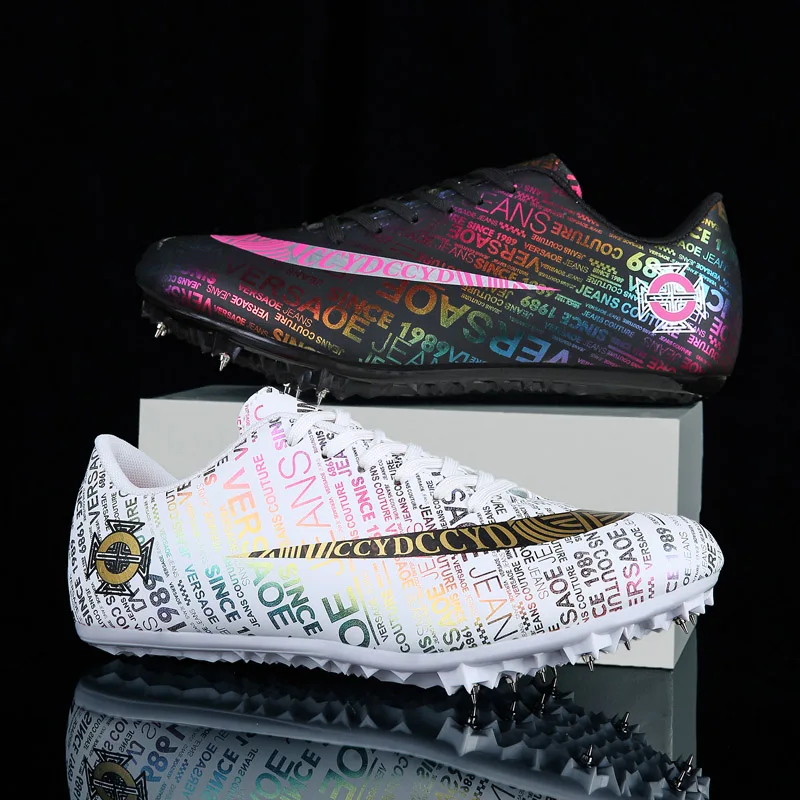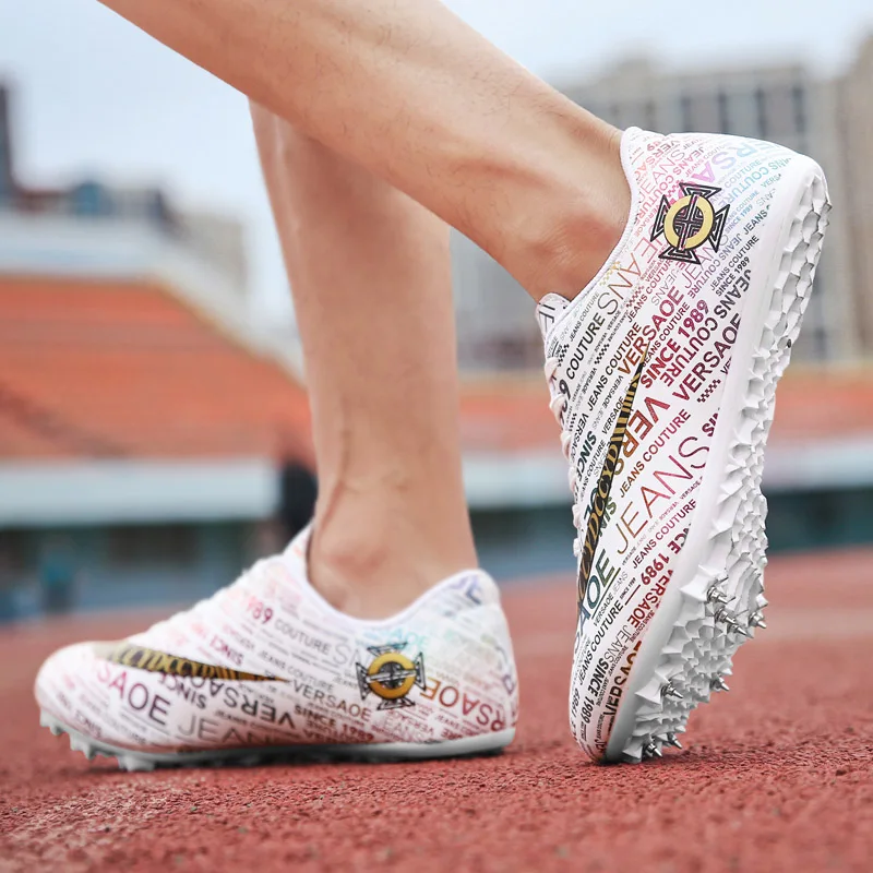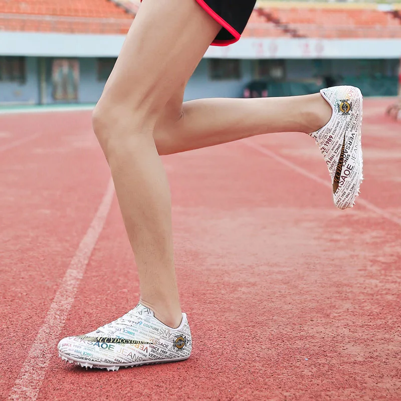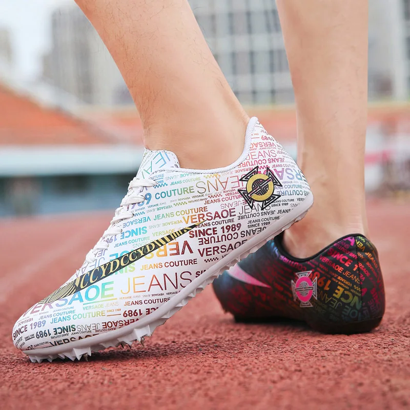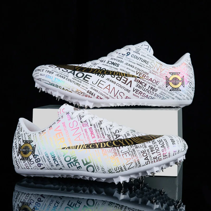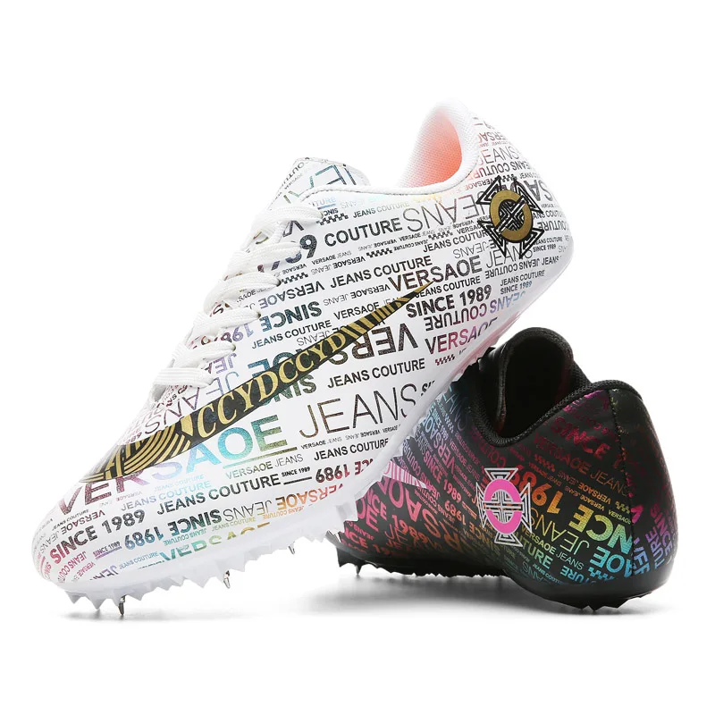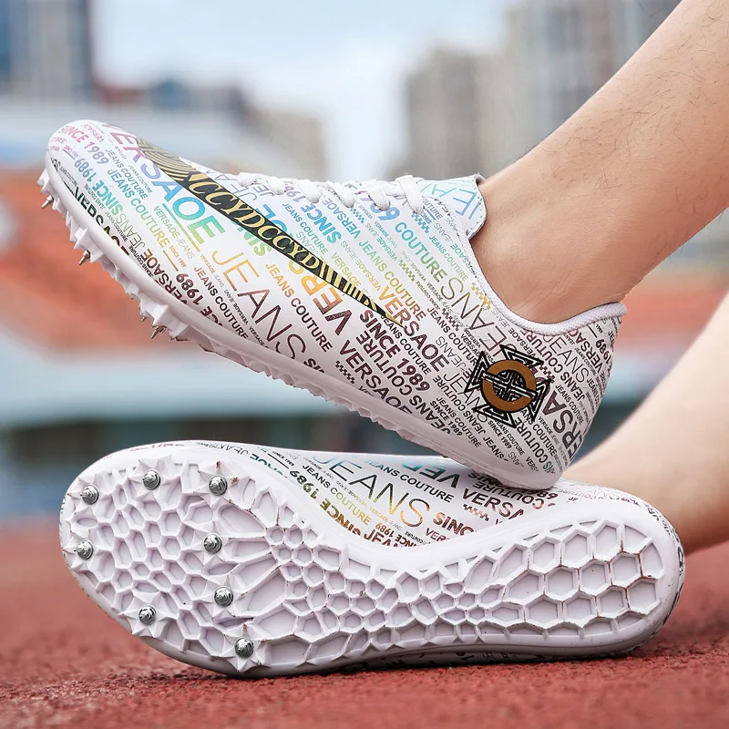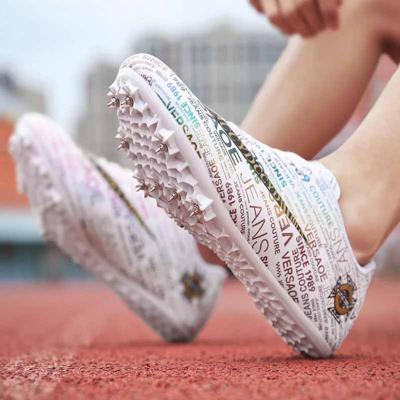 Мужские Детские тренировочные кроссовки с шипами для трекового поля для женщин и мужчин, спортивные кроссовки для бега, газета, граффити, обувь для мужчин, гоночные кроссовки с шипами