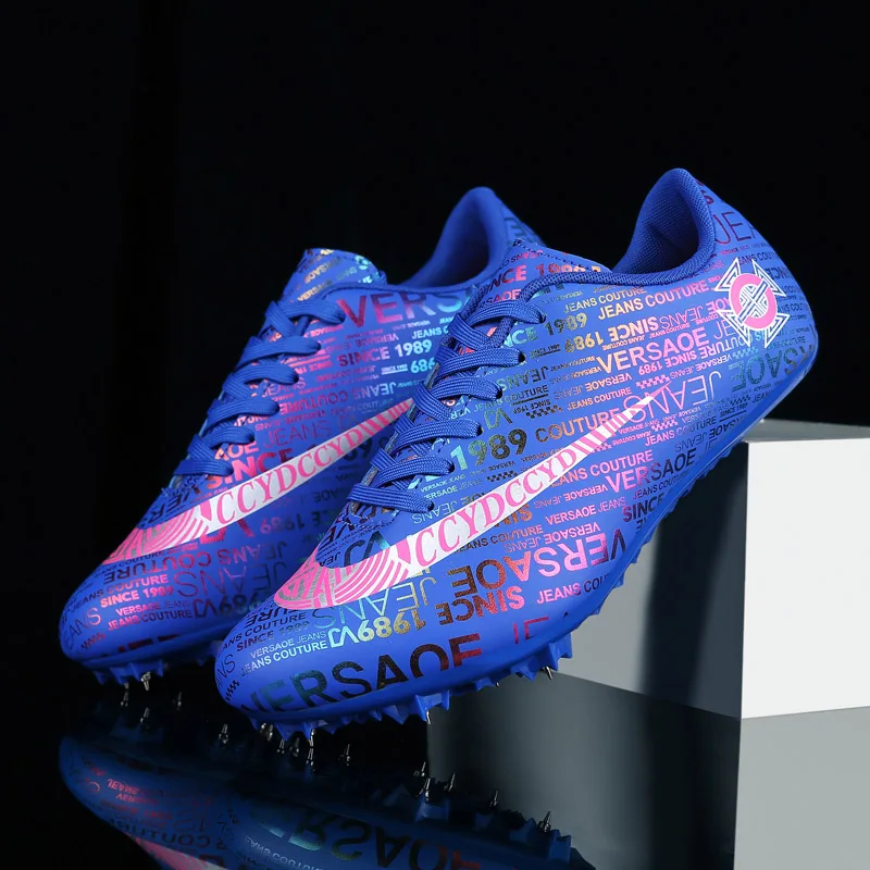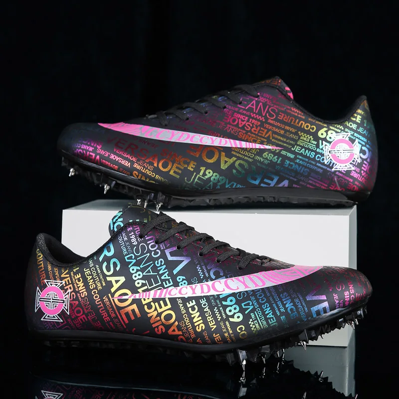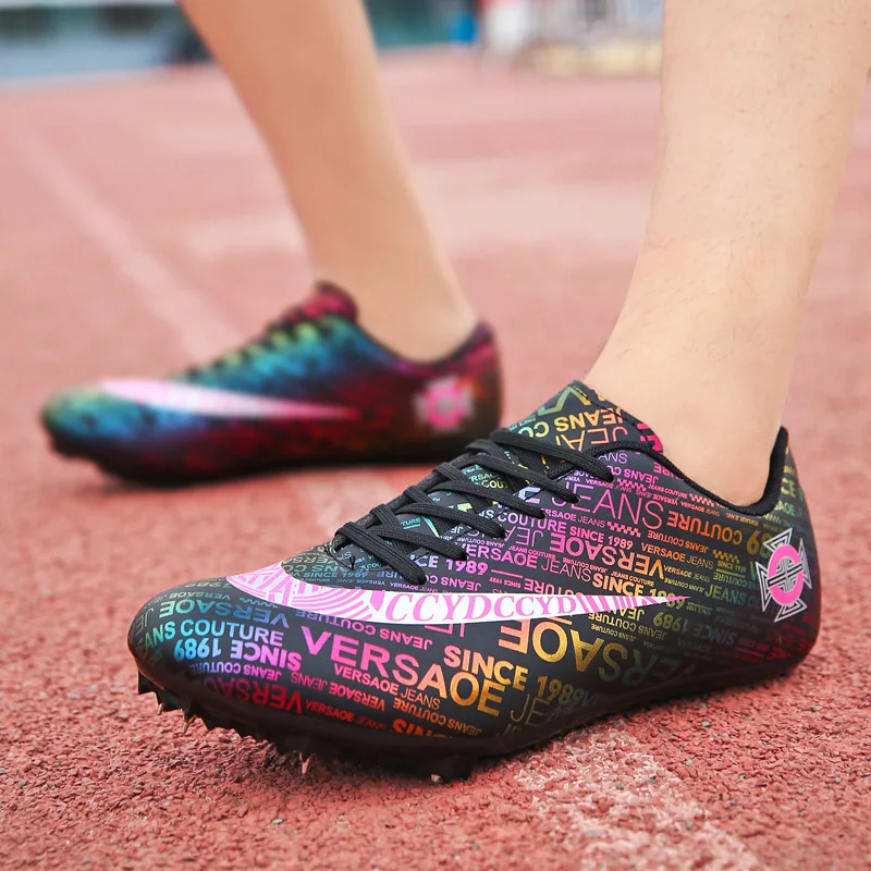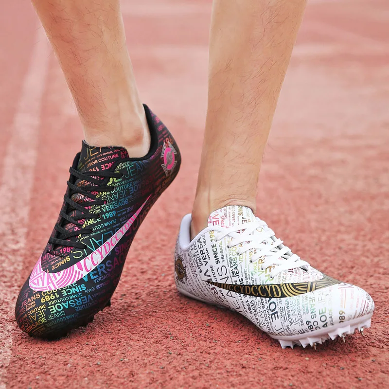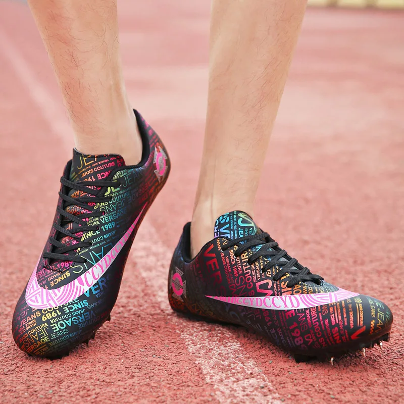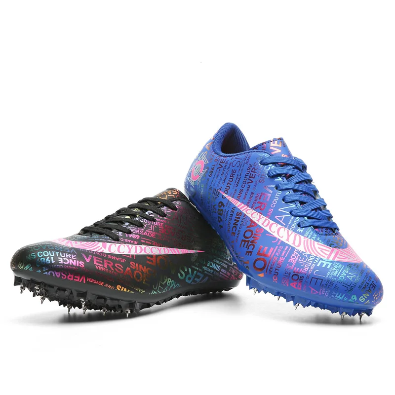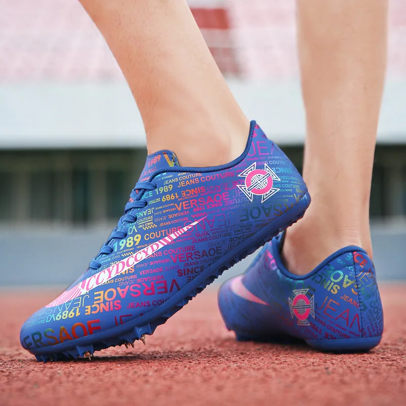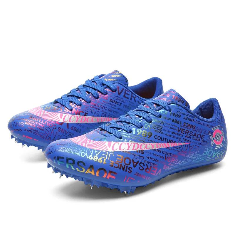Мужские Детские тренировочные кроссовки с шипами для трекового поля для женщин и мужчин, спортивные кроссовки для бега, газета, граффити, обувь для мужчин, гоночные кроссовки с шипами