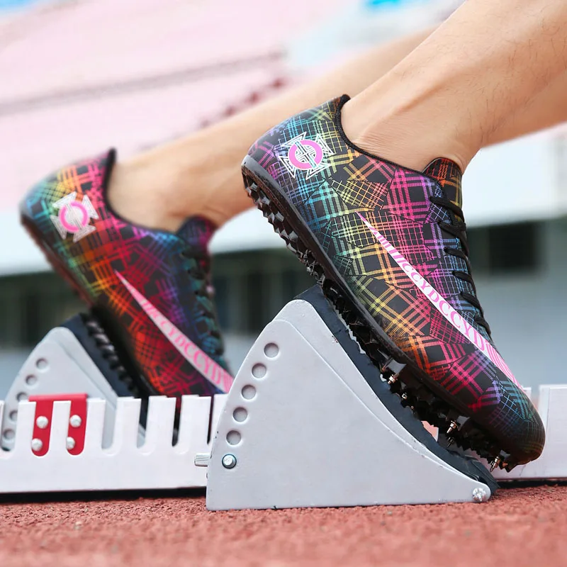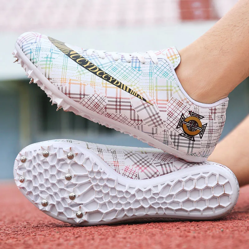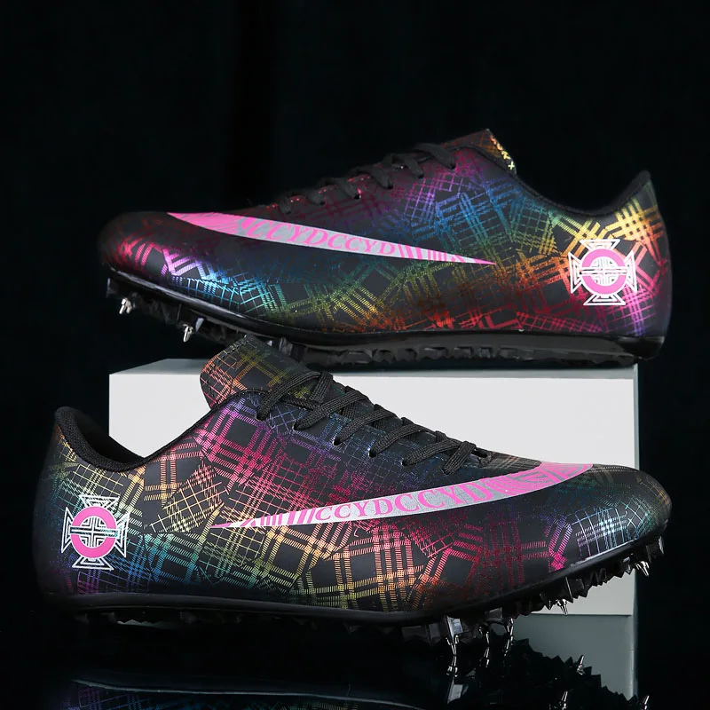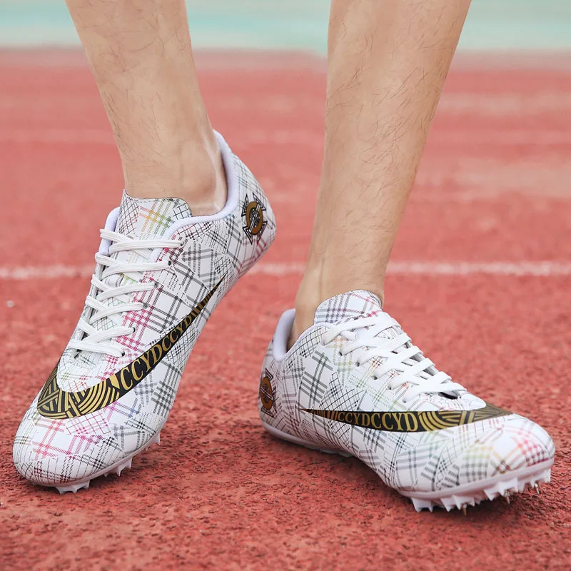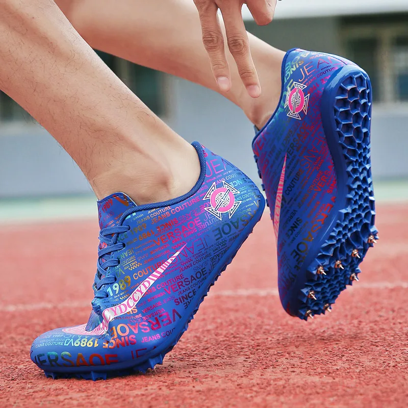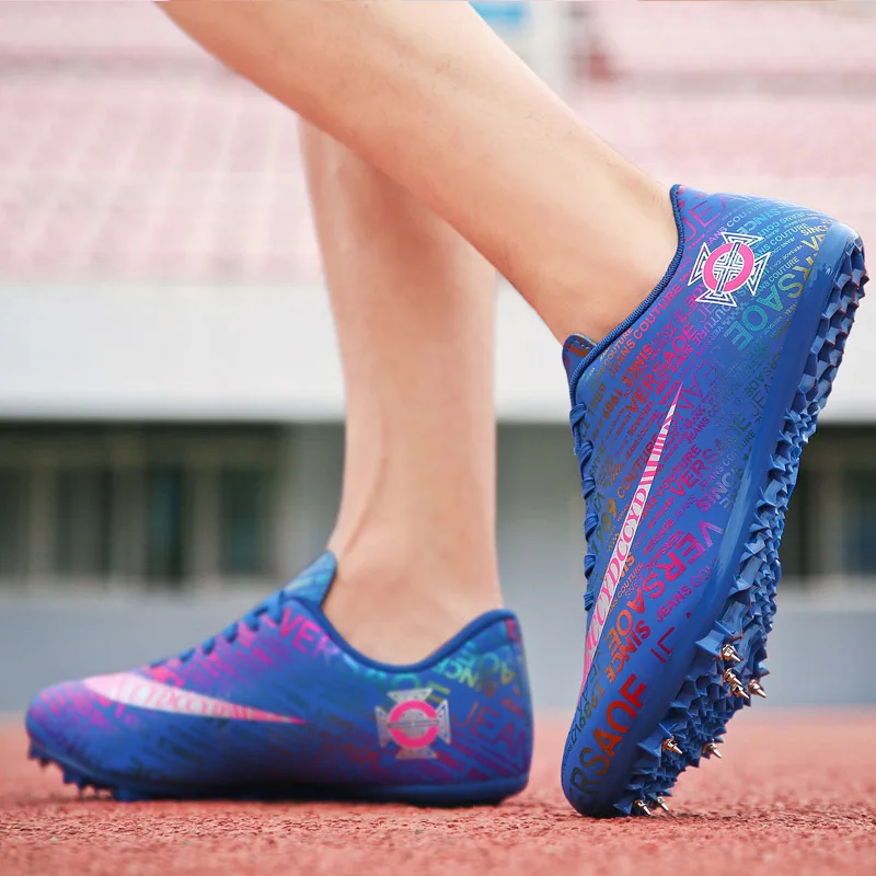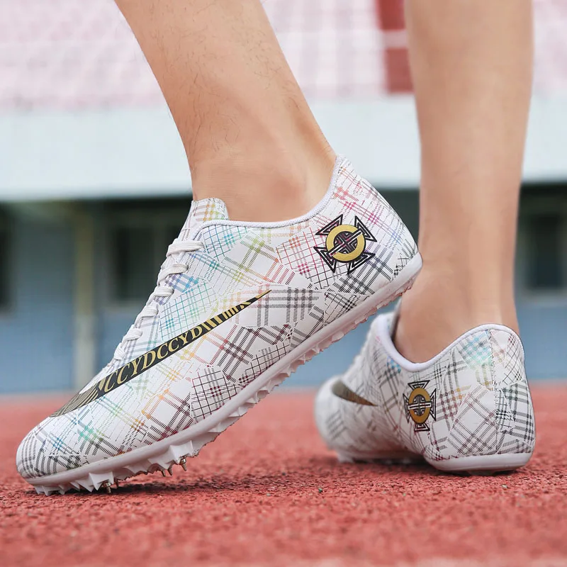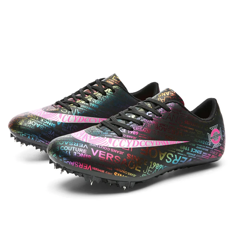 Мужские Детские тренировочные кроссовки с шипами для трекового поля для женщин и мужчин, спортивные кроссовки для бега, газета, граффити, обувь для мужчин, гоночные кроссовки с шипами