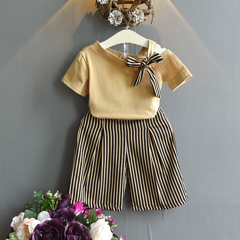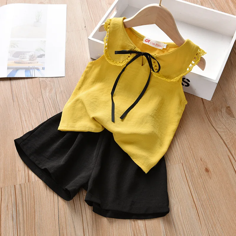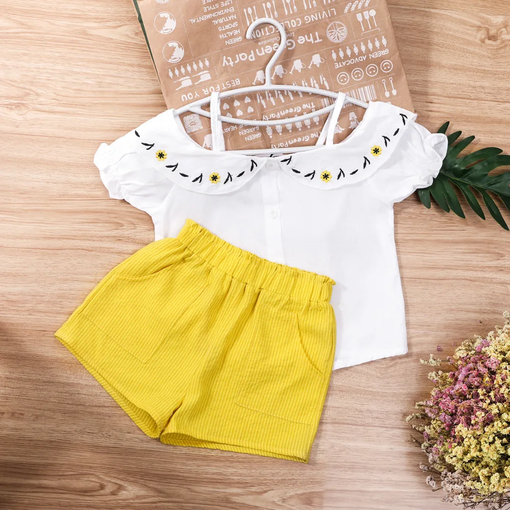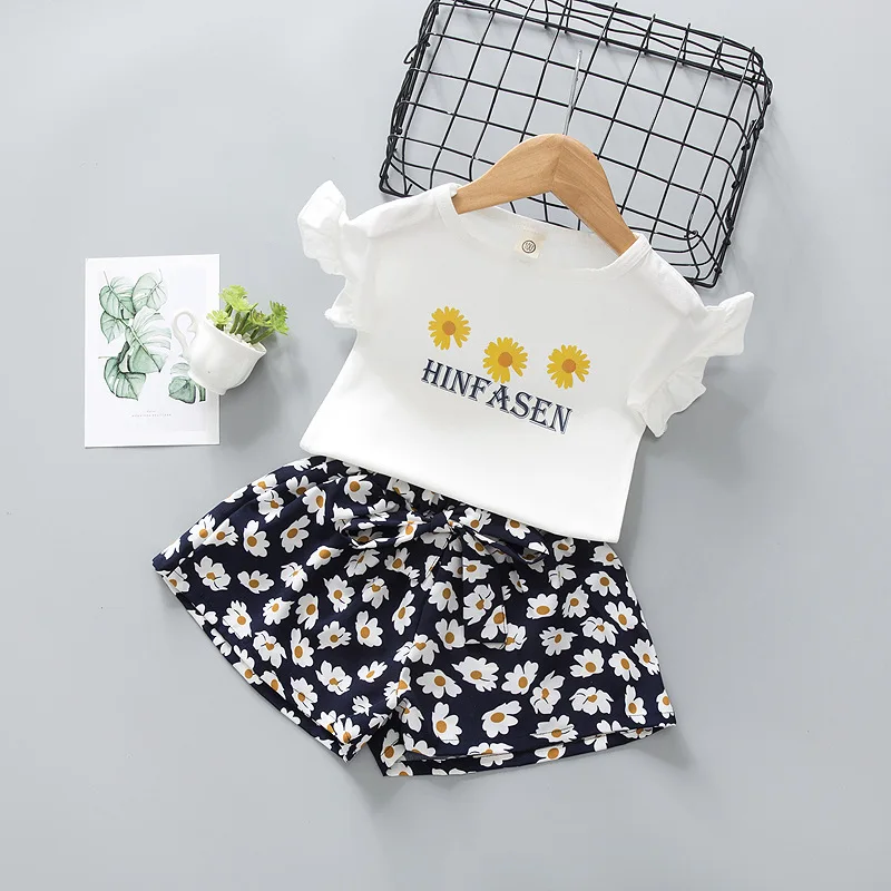 Футболка и шорты для девочек, летняя, с цветочным принтом