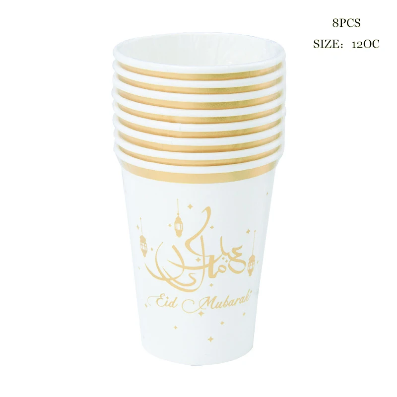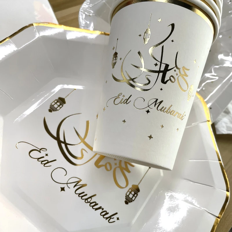 Одноразовая посуда ИД Мубарак, 8 шт., бумажная тарелка с ромбом, Золотое Тиснение, белые стаканчики, украшения на Рамадан, домашний Карим, Ид аль-Адха
