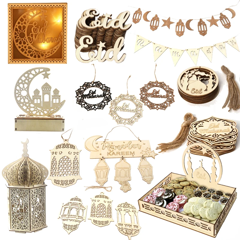 Деревянное украшение EID Mubarak 2022 украшения на Рамадан для дома Исламские мусульманские праздничные принадлежности Рамадан Kareem подарок Eid Al Adha орнамент