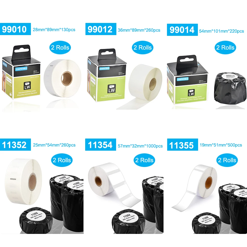 2 совместимые рулоны Dymo LW 99010 99012 99014 11352 11355 LW 11354 lables для LabelWriter 400 450 450Turbo Printer Seiko SLP 440