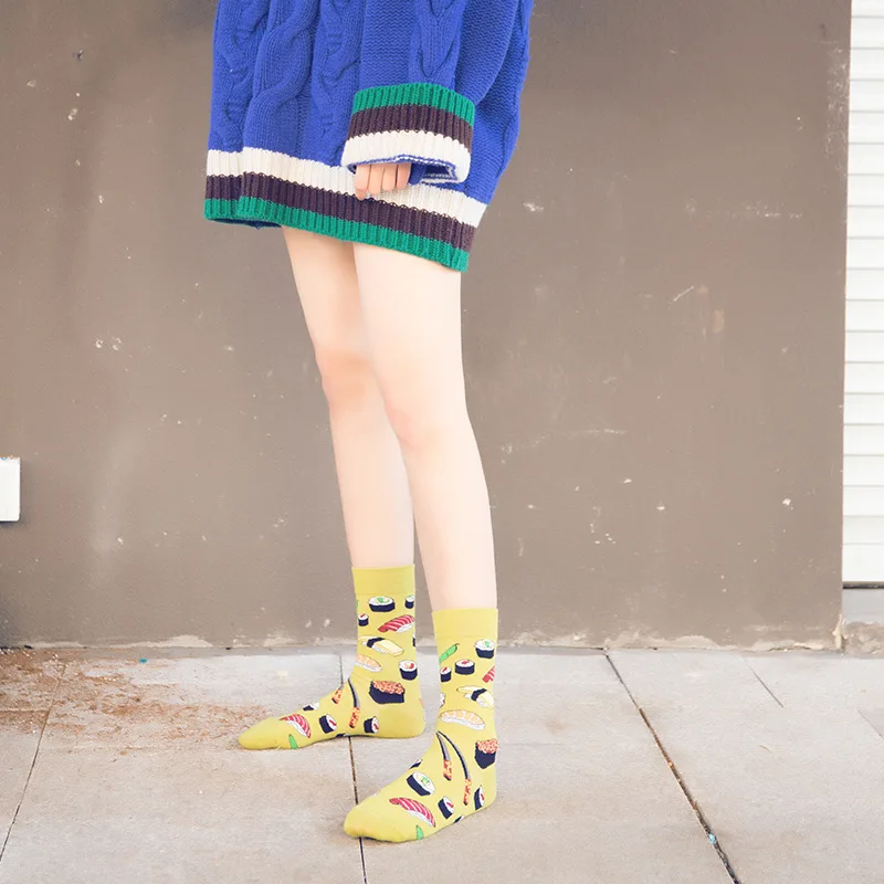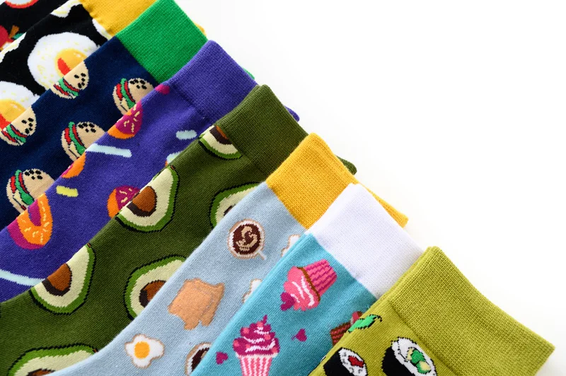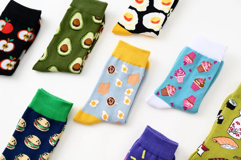Носки мужскиеженские Смешные с принтом, милые зимние хлопковые модные с надписями в стиле Харадзюку, с авокадо, суши