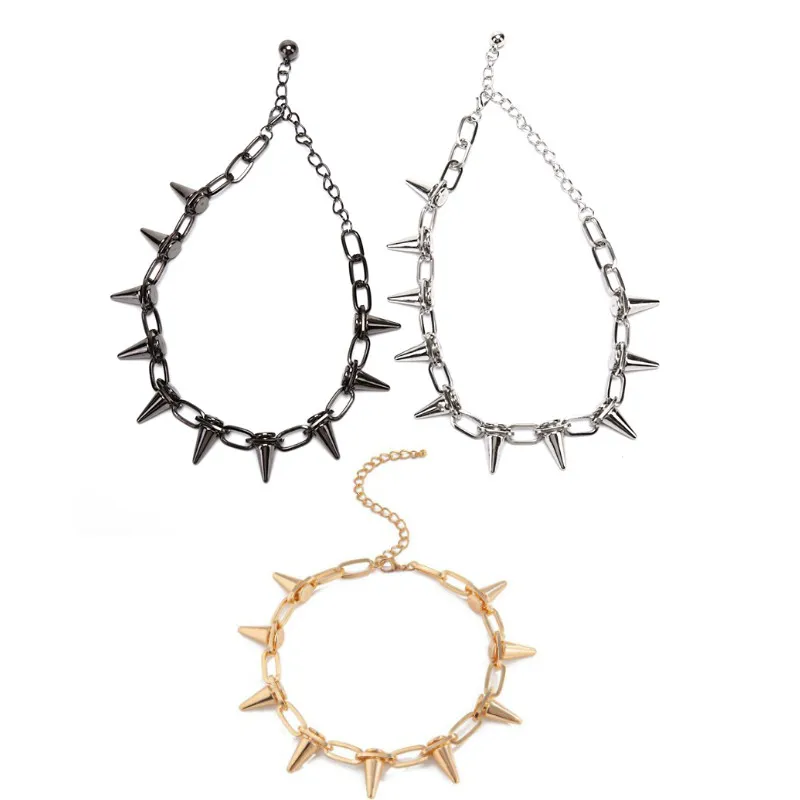 Чокеры с заклепками, панк-гот, материал CCB ручной работы, ожерелье-чокер с Шипами Ожерелье из заклепок Rock Чокеры в готическом стиле, Черное золото, серебристый цвет