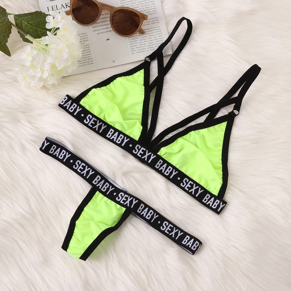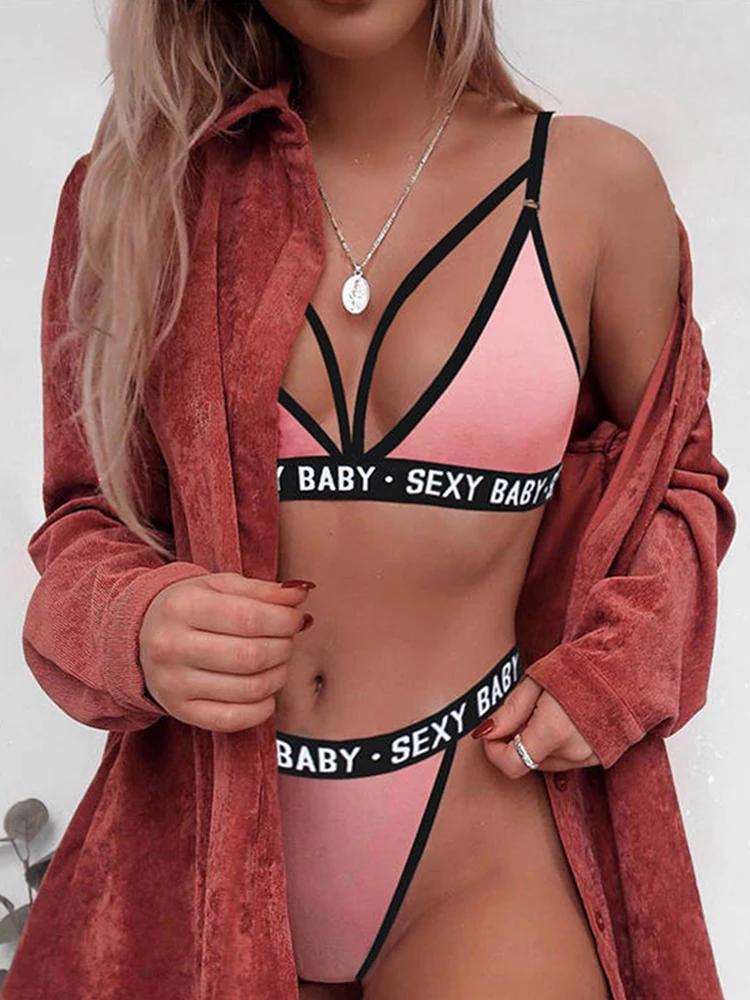 Женское однотонное сексуальное нижнее белье с надписью, комплект ни...