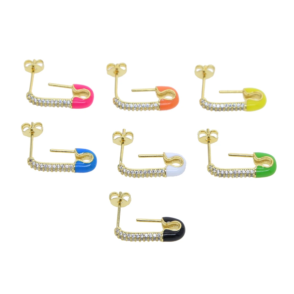 Флуоресцентная неоновая эмалированная безопасная булавка Золотая Сережка-гвоздик цветов микро паве прозрачный CZ Радужный Европейский черный женский Лидер продаж ювелирные изделияКамень: фианит 5АПокрытие: Настоящее позолота
