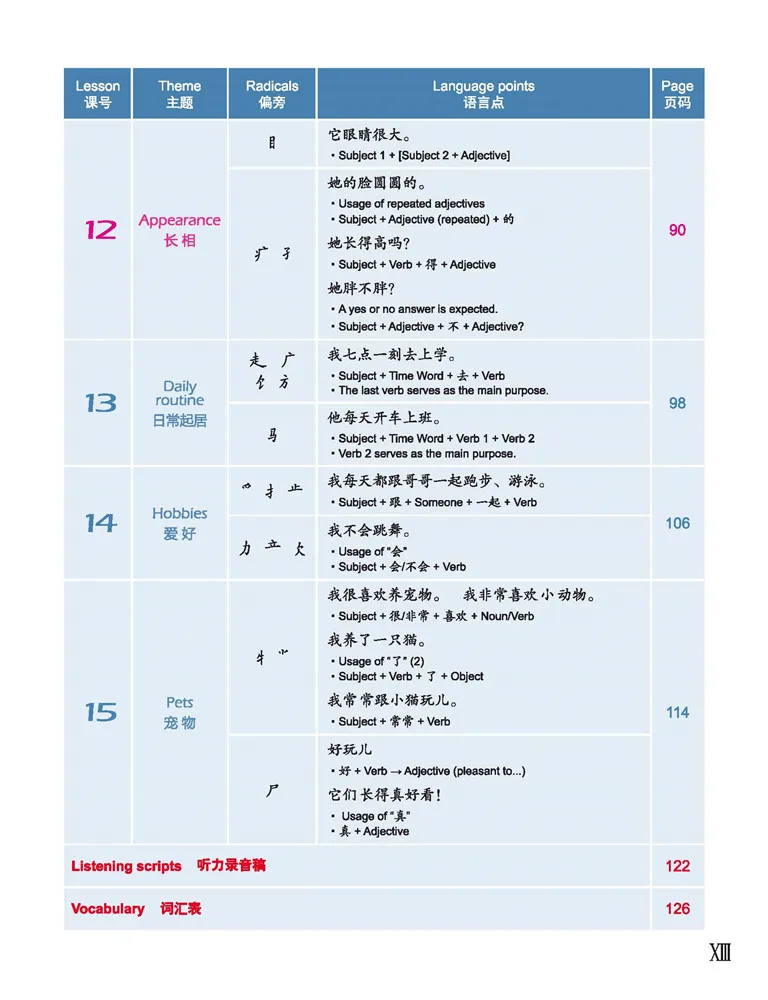 Этап 1 (книги 1, 2, 3): В центре внимания этого этапа находится создание прочной основы через обучение пиньинь, символов, лексики и грамматики. Цель заключается в том, чтобы помочь студентам повысить интерес к изучению китайского языка и развить навыки в использовании простого китайского языка для общения.
