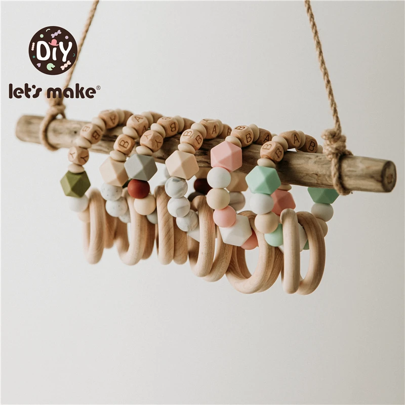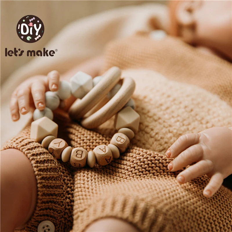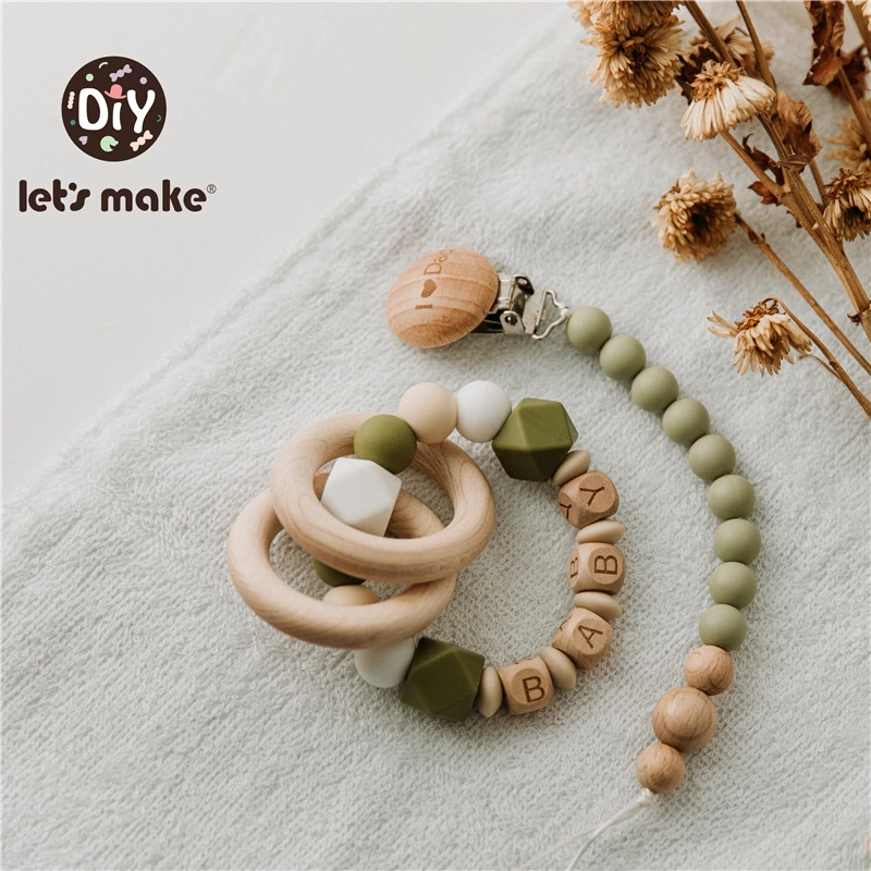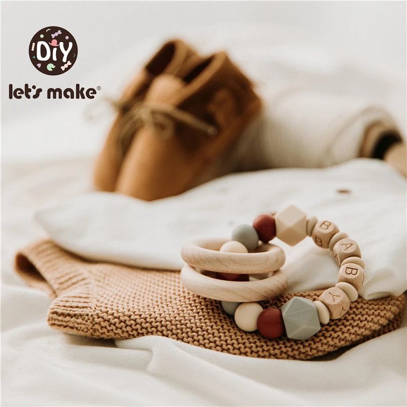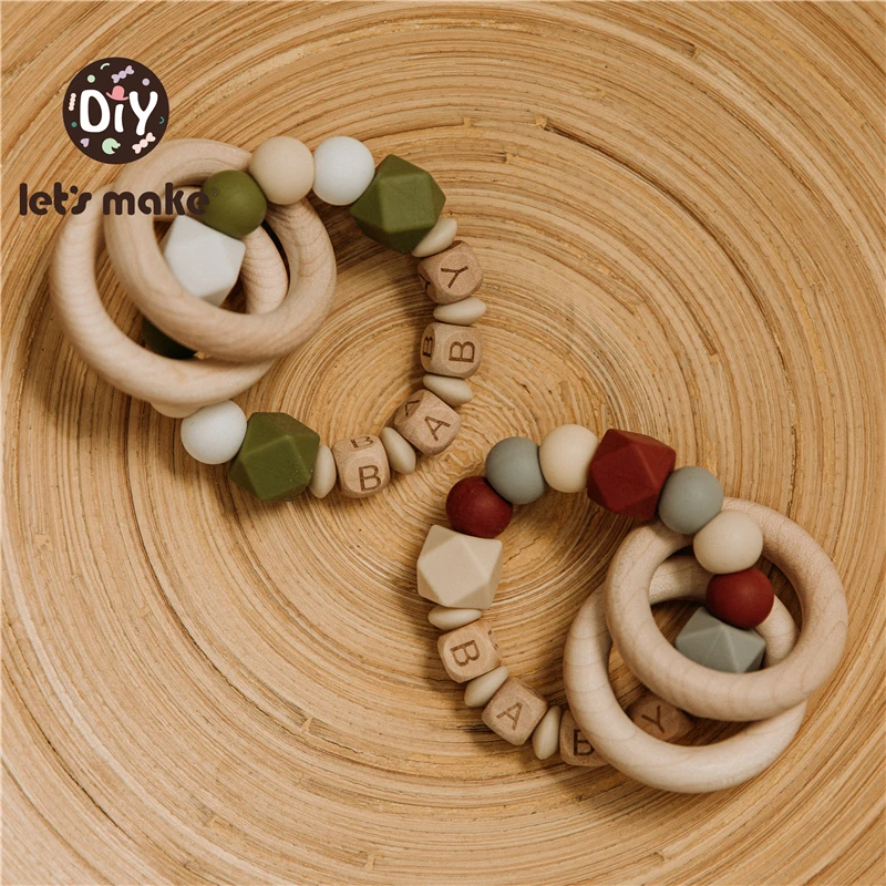 Детский деревянный Прорезыватель для зубов let's make, Буковые силиконовые бусины, погремушки для младенца, подарок для новорожденных, деревянные игрушки 2020
