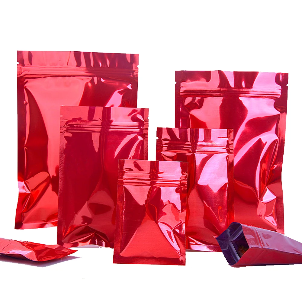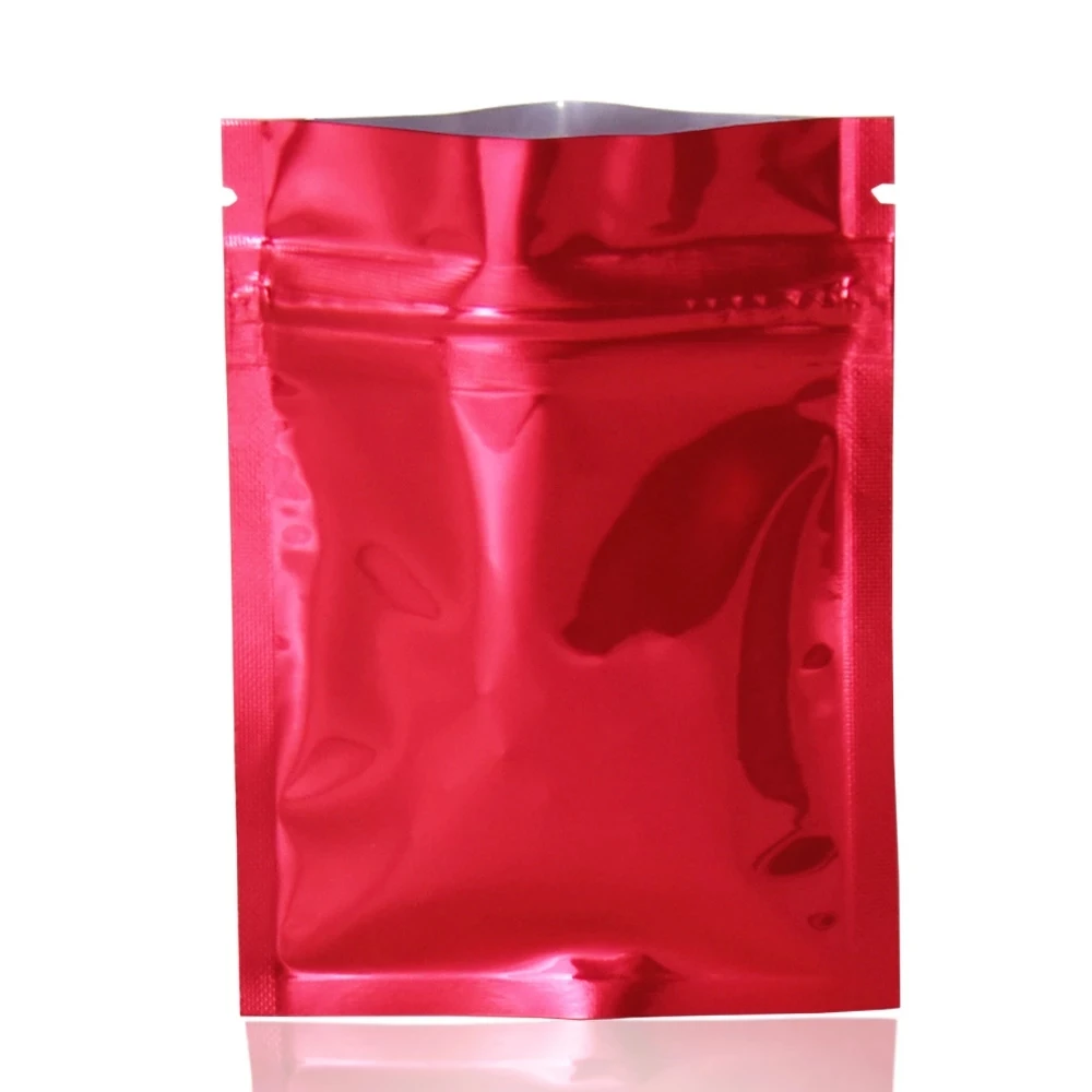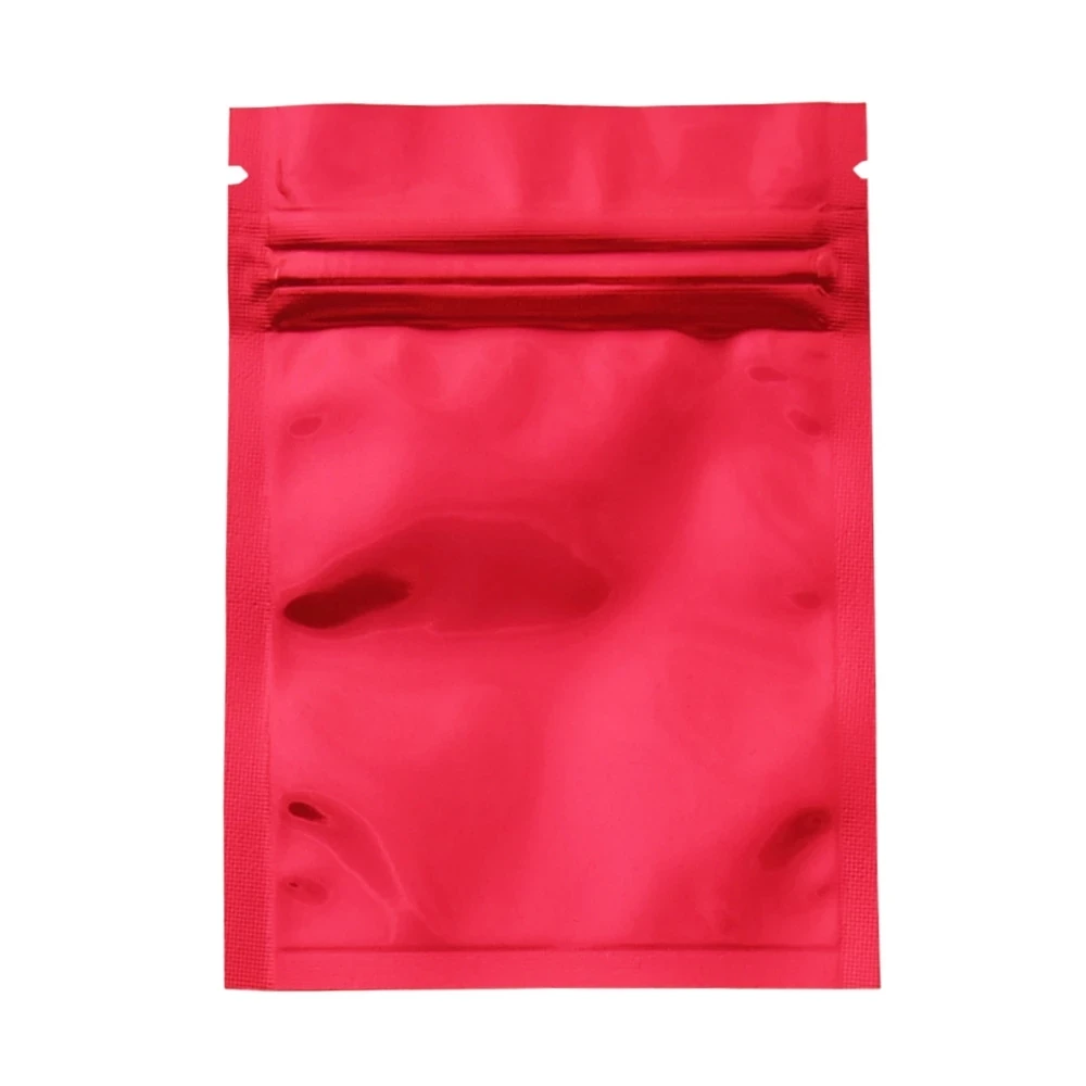 100 шт.лот Глянцевая красная майларовая фольга с застежкой-молнией, плоская сумка с отрывным вырезом, Многоразовые Пакеты для сухих фруктов, орехов, кофейных зерен