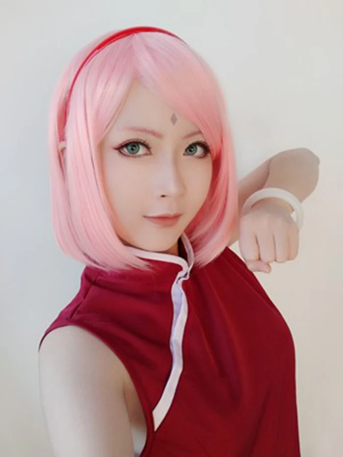 Парик для косплея Харуно Сакура, розовые короткие синтетические вол...