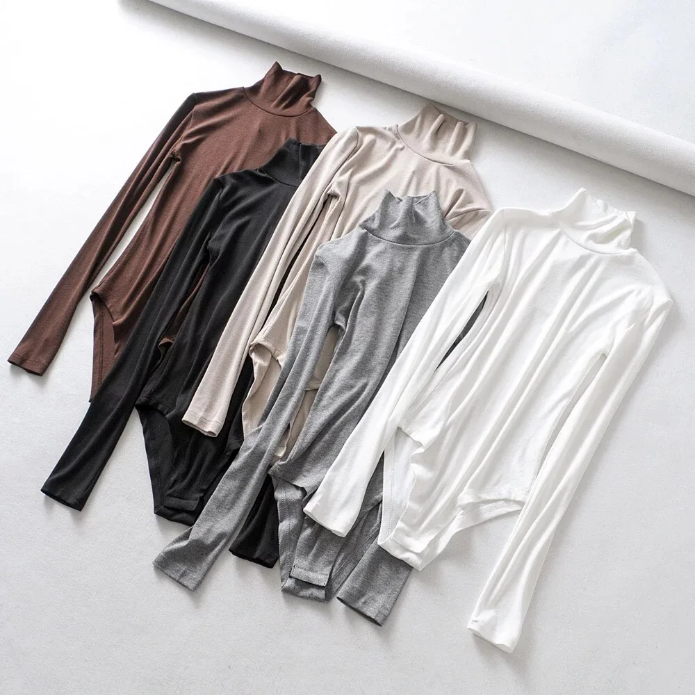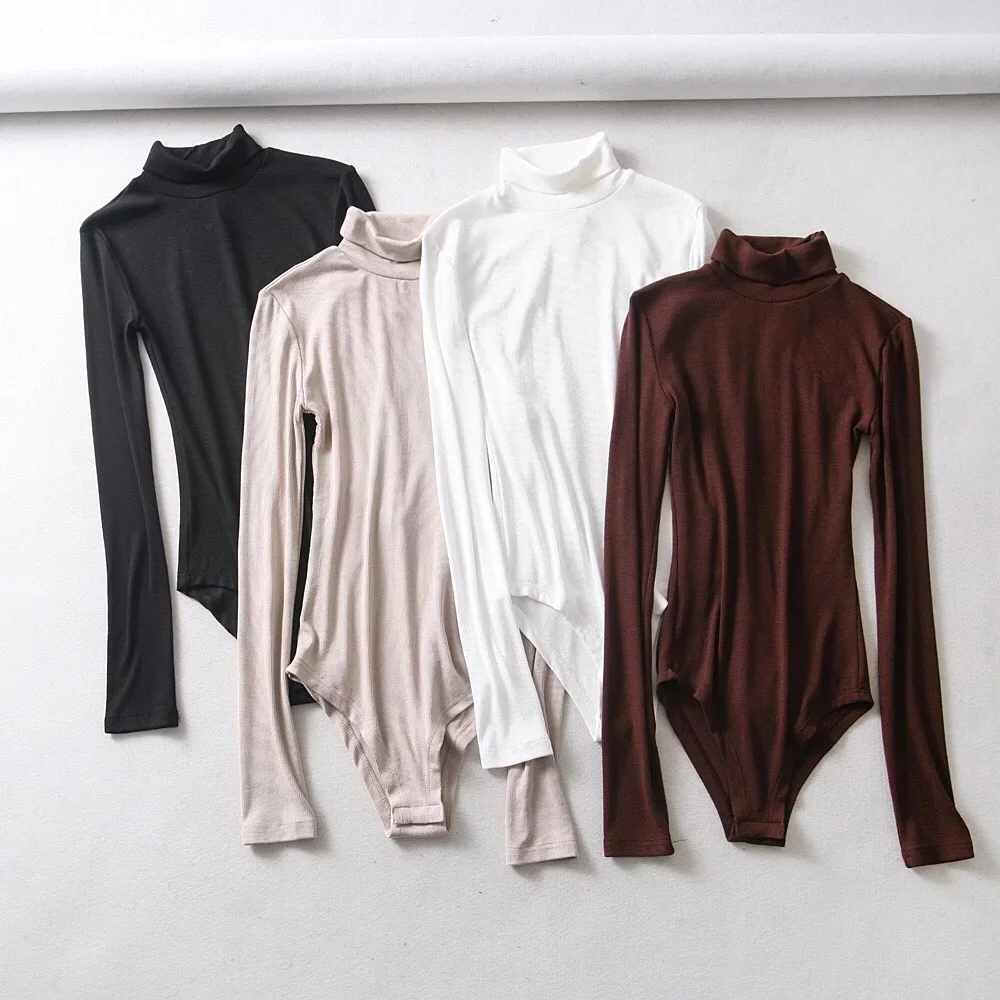 5 видов цветов пикантные с высоким, плотно облегающим шею воротником в рубчик с длинными рукавами боди женские узкие короткие комбинезон Стретч узкого кроя комбинезон Bodycon Комбинезоны