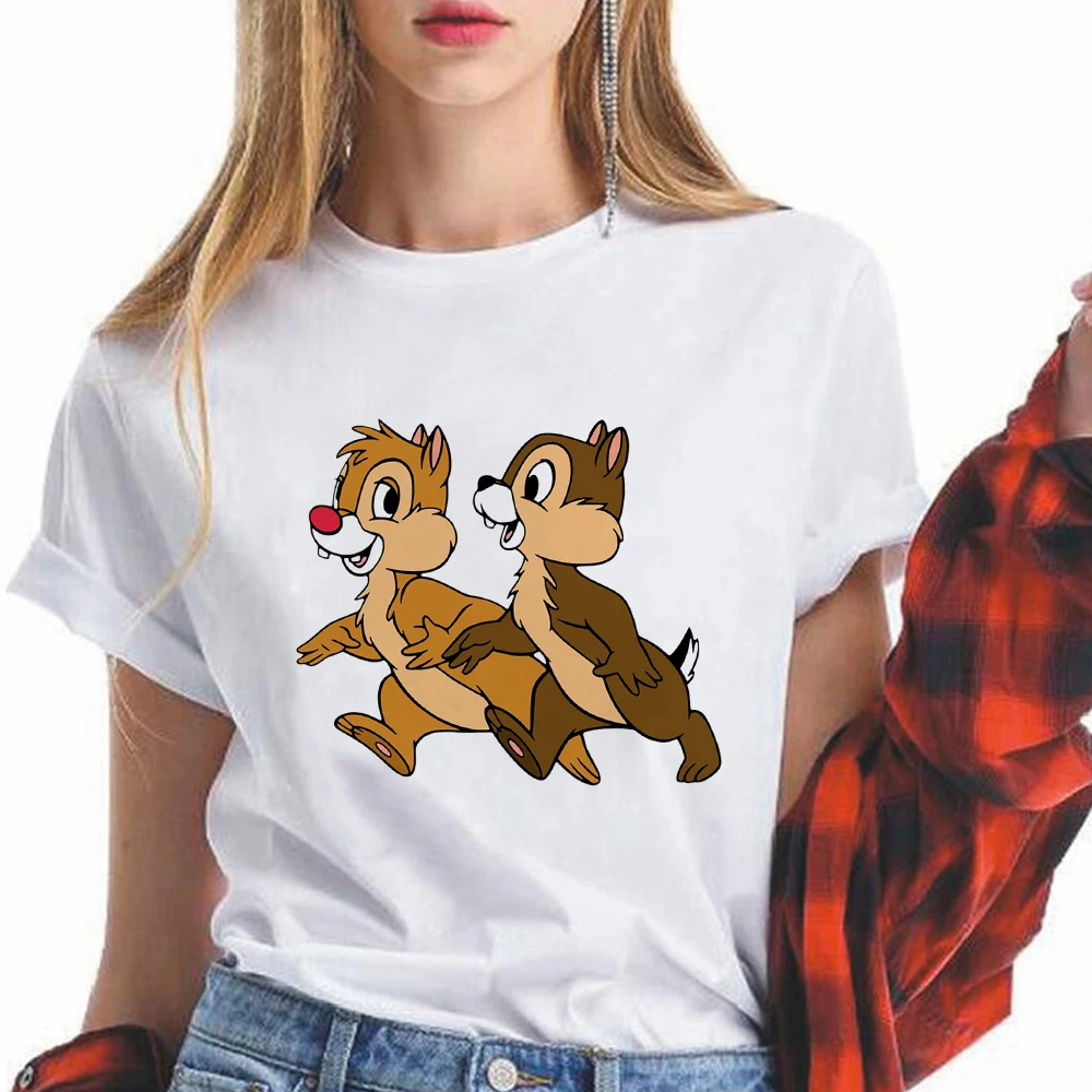 Женские футболки с принтом чипа и Дейла, летние футболки с графическим рисунком, забавные рубашки для девочек, свободные топы с круглым вырезом в стиле Харадзюку