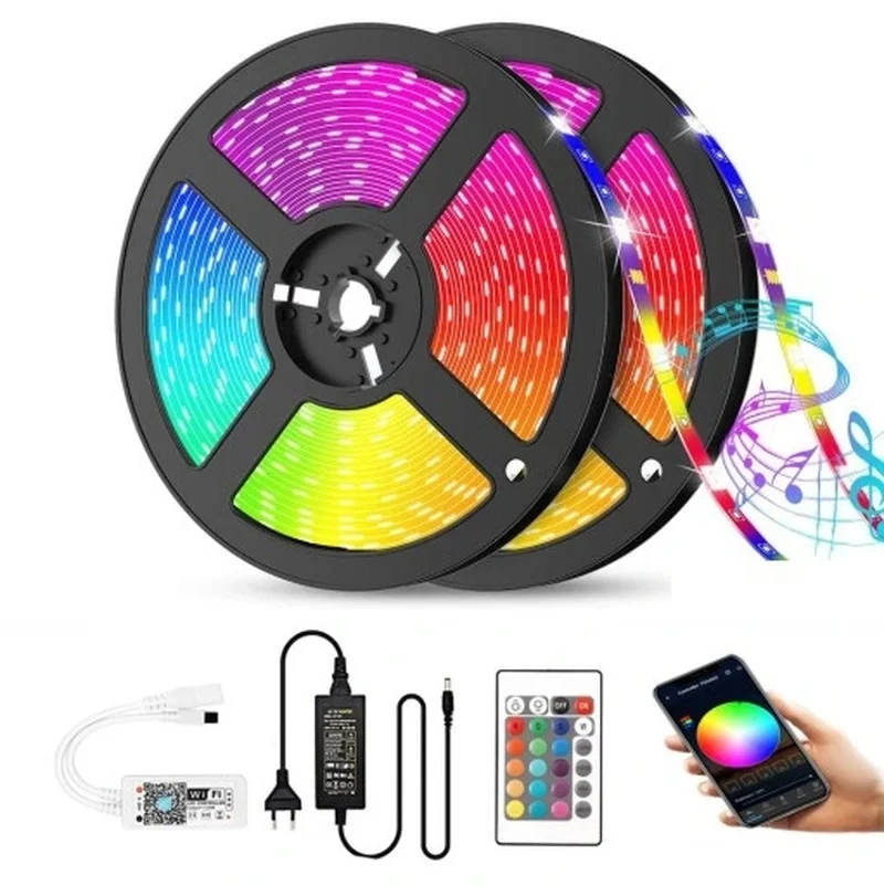 Светодиодная лента с подсветкой, Bluetooth, цветная подсветка, ночная лампа SMD 5050 2835 RGB, Светодиодная лента 5 метров с блоком питания, пульт дистанционного управления