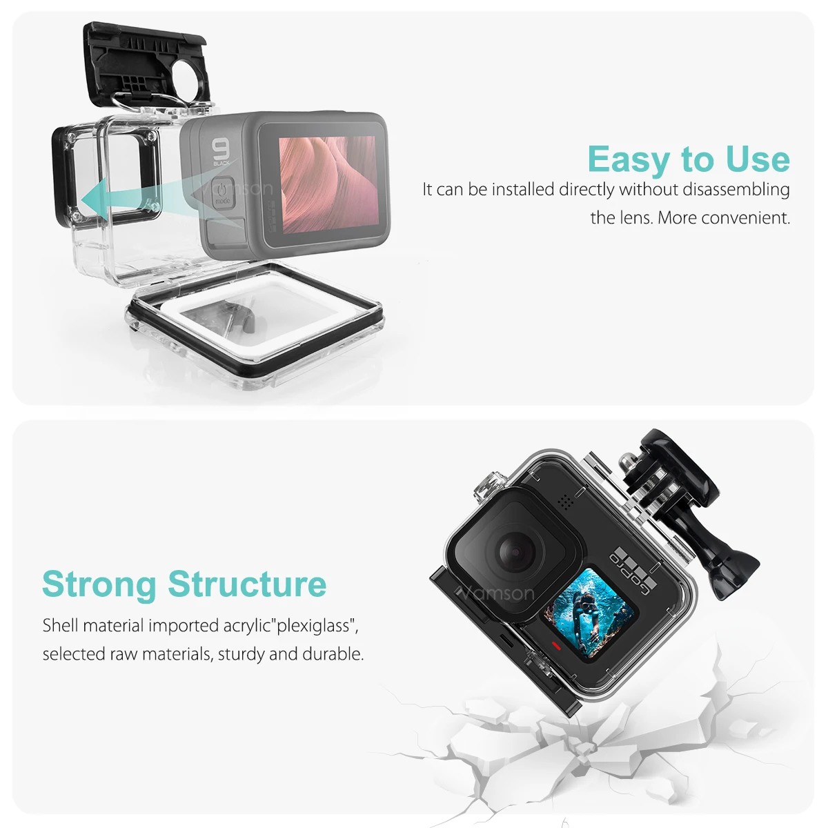 Плавучая планка для штатива Vamson для Gopro 10 9, водонепроницаемый корпус, боковая крышка для Gopro Hero 10 9, черные аксессуары для спортивной камеры