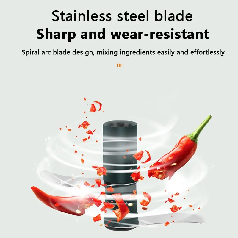 3. Быстрый Измельчитель: острое лезвие измельчителя чеснока может быстро нарезать чеснок, специи, орехи, овощи, мясо, кубики льда и т. Д. Он очень подходит для небольших продуктов.