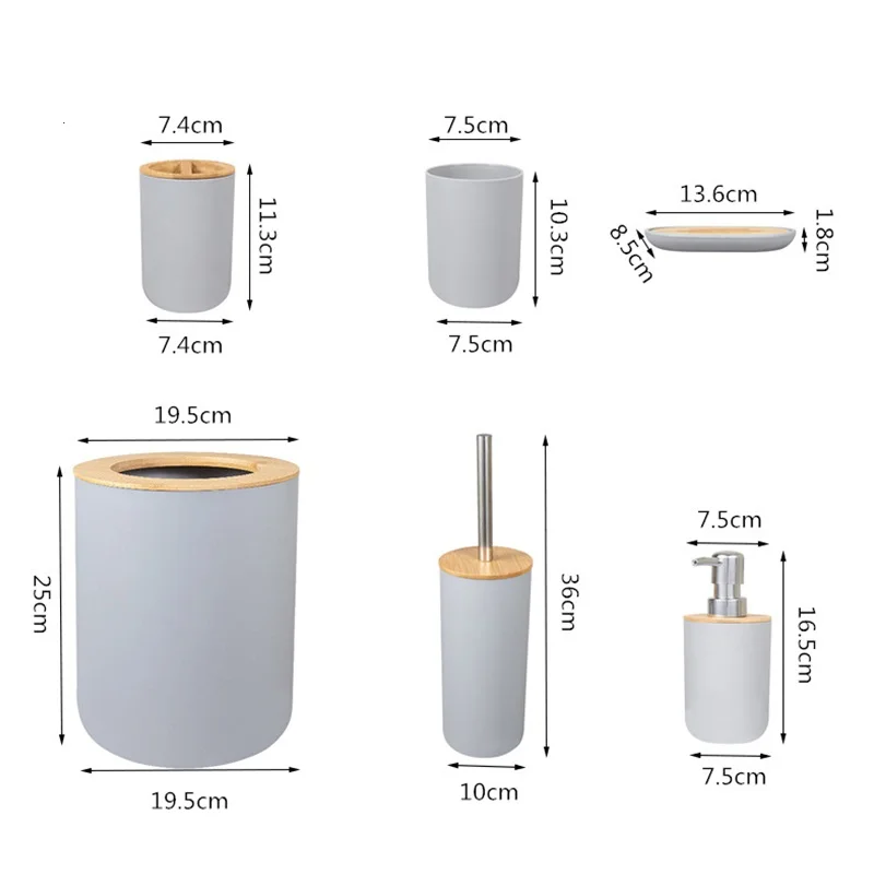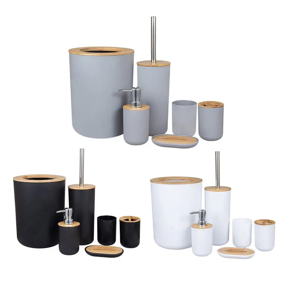 6 шт Аксессуары для ванной комнаты Набор Зубная щётка держатель мыла для туалетной щетки мусорное ведро для ванной комнаты Набор из бамбука и дерева