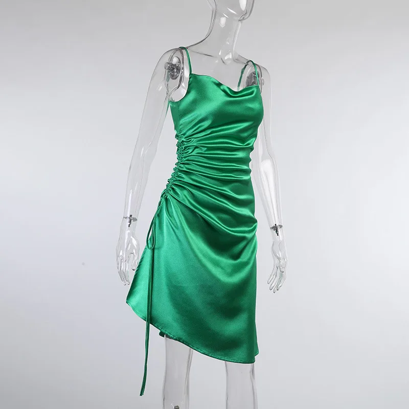 Мини-платье женское на бретелях-спагетти с разрезом, модное элегантное сексуальное драпированное платье с открытой спиной для клувечерние, 2021