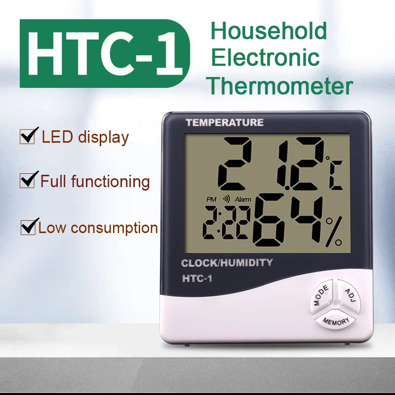 Цифровой измеритель температуры и влажности HTC-1, HTC-2, с ЖК-дисп...