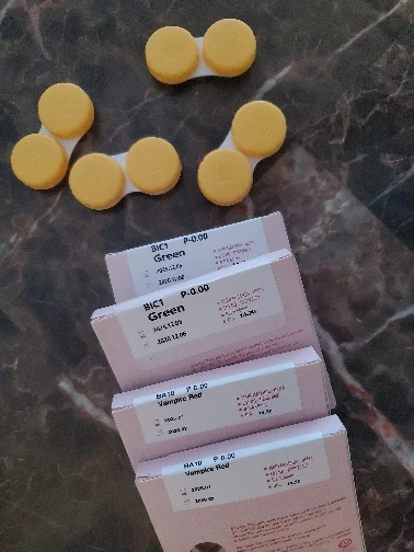 haven’t tried them yet but they look super cool, the red is such a gorgeous color. the seller was quick to ship, they got to arizona in about two and half weeks plus the seller also provided a contact lens case for free as a gift which was lovely! 10/10 would recommend!
