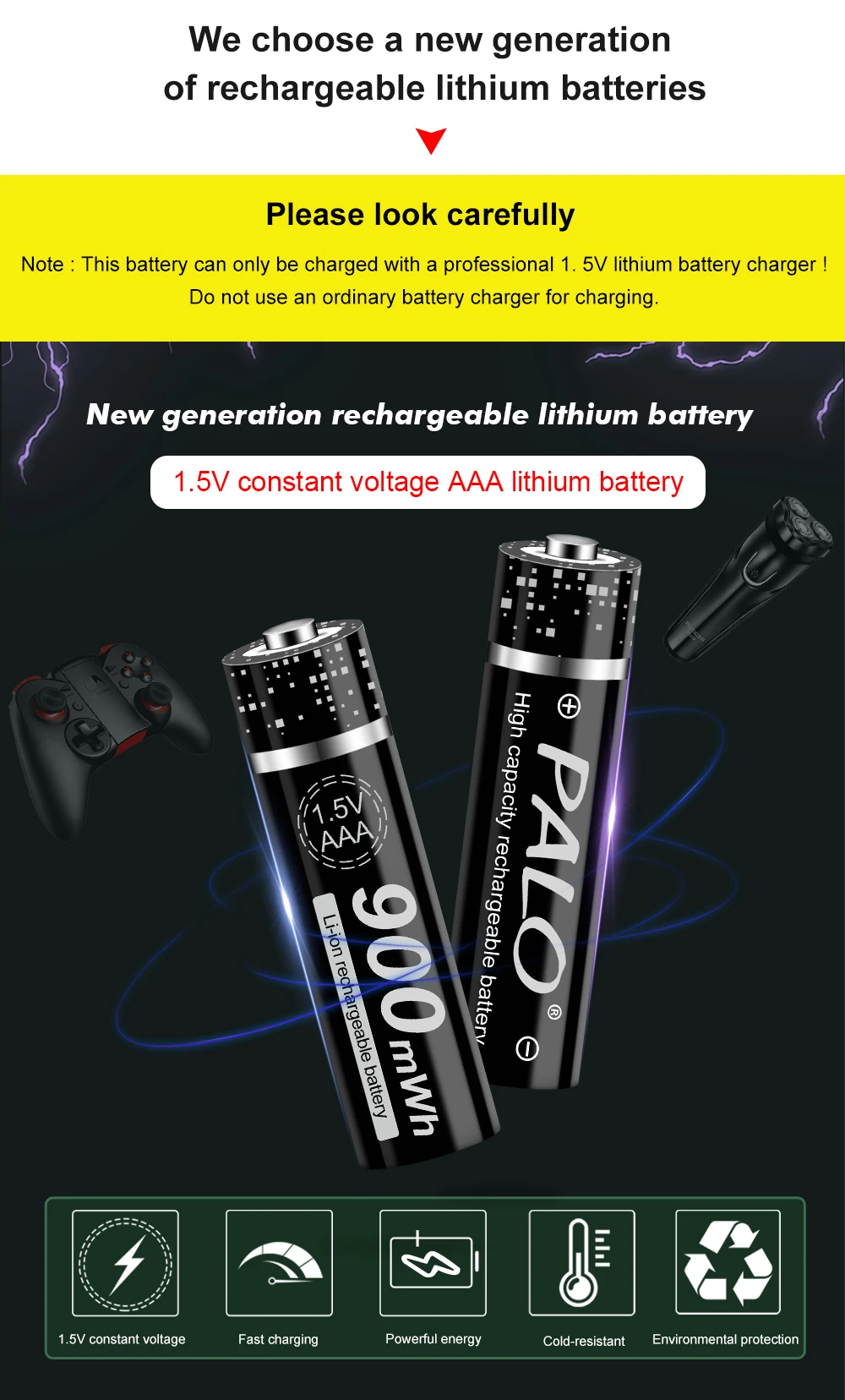 PALO 1,5 V AAA 900mWh литий Перезаряжаемые батареи 1,5 V AAA литиев...