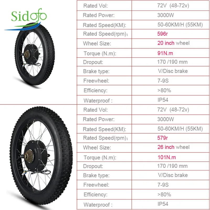Мотор-колесо для электровелосипеда, 72 в, 3000 Вт, набор для электровелосипеда, 55-70 кмч
