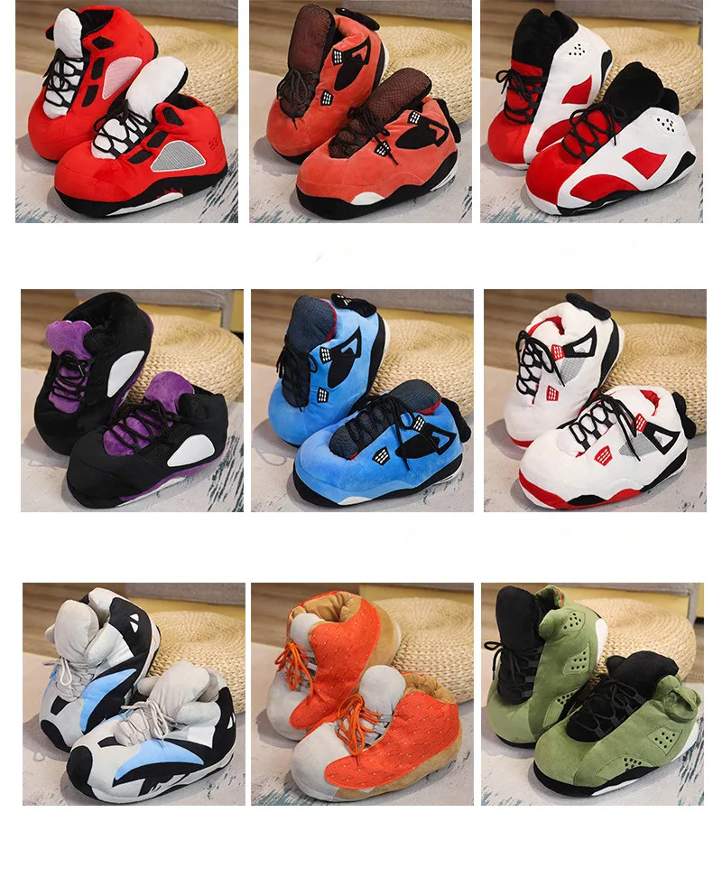 2021 зимние тапочки унисекс, женские Уютные теплые домашние тапочки для влюбленных, Симпатичные пушистые Смешные кроссовки, Баскетбольная обувь