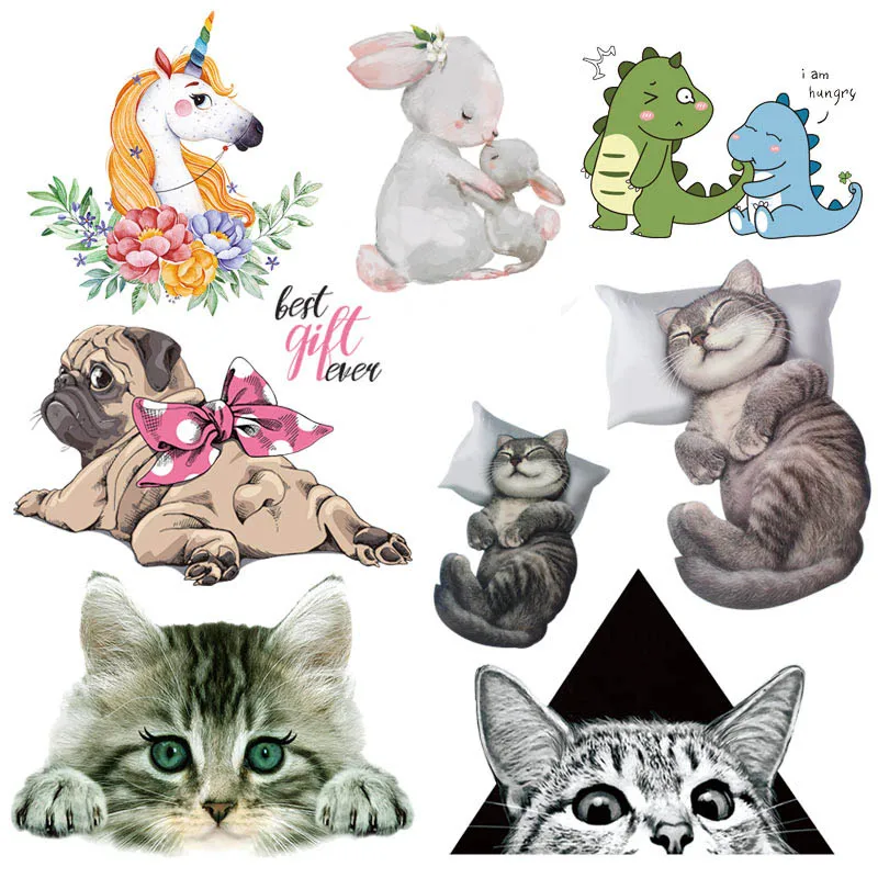Симпатичные нашивки с котами и животными, наклейки для одежды, термонаклейки с мультяшным рисунком на одежду, нашивки для одежды в полоску