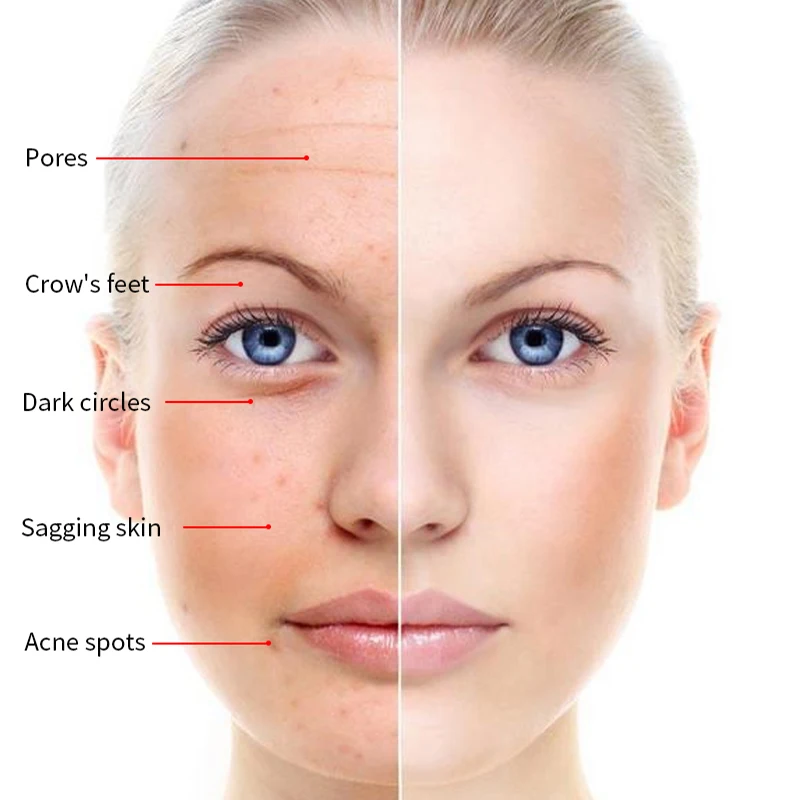 1. Увлажнение кислородом водорода: омоложение кожи.2. Ультразвуковой импорт: способствует микроциркуляции, омолаживанию кожи.3. Холодное отбеливание молотком: холодная пуховая кожа после обработки.4. Скребок для кожи: Снимите угловую кожу и подтяните.5. Кислородная очистка водородом: Очищение лица, пилинг, очищение пор.6,9 Полюс RF: компактное формирование, лифтинг лица.1. Холодный молоток быстро охлаждает, сужает поры, успокаивает кожу, успокаивает мешки под глазами, запирает питательные вещества.2. Скраббер: высокочастотная вибрация, эффективное введение, восстановление кожи, зарождающаяся текстура.3. РФ: способствует регенерации коллагена, Заполняет морщины, восстанавливает упругость и эластичность кожи.4. Кавитация: вибрирует для удаления омертвевшей кожи, Удаляет излишки кератина, улучшает усвоение и проникновение кожи.5. Кислородный спрей: инструмент производит высококислородные водно-молекулярные ионные клетки в сочетании с продуктовым раствором, и инструмент сбрасывается в дерму на высокой скорости.6. Гидро-дермабразия: уникальная Поворотная Очищающая ручка преобразует чистую воду в гидроксид водорода, который производит на поверхности кожи мелкие молекулы H2, чтобы молекулы воды могли быстро проникнуть в кожу и достичь эффекта разглаживания и отбеливания.