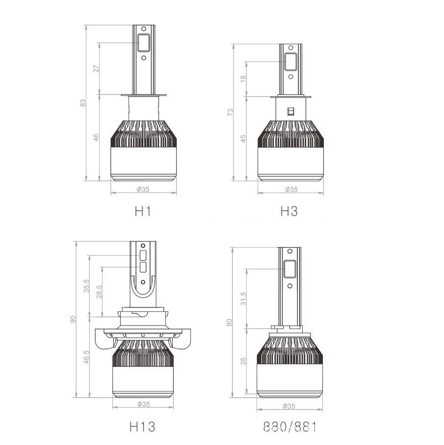 Тип разъема: H1/H3/H4/H7/H8/H9/H11/9004/9005/9006/9007
