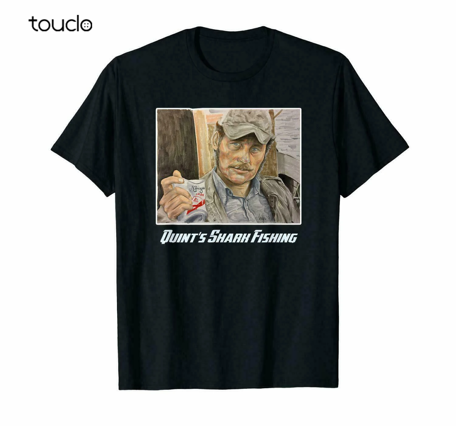 Черная футболка с изображением капитана Квинта челюсти Мартина Броу...