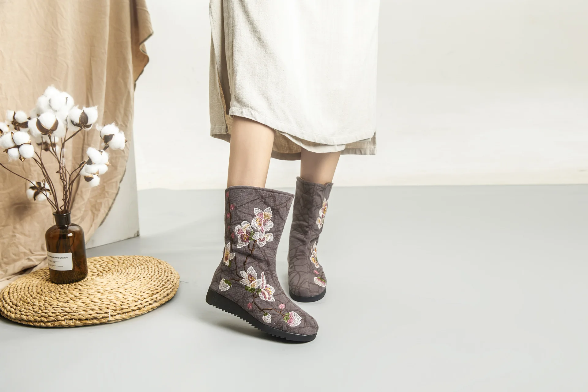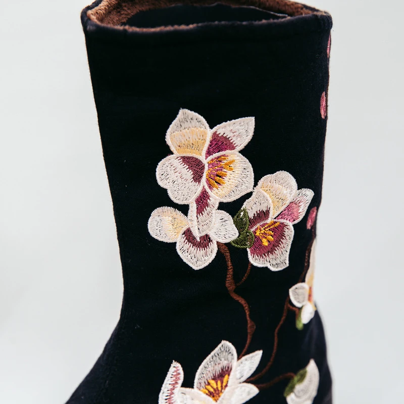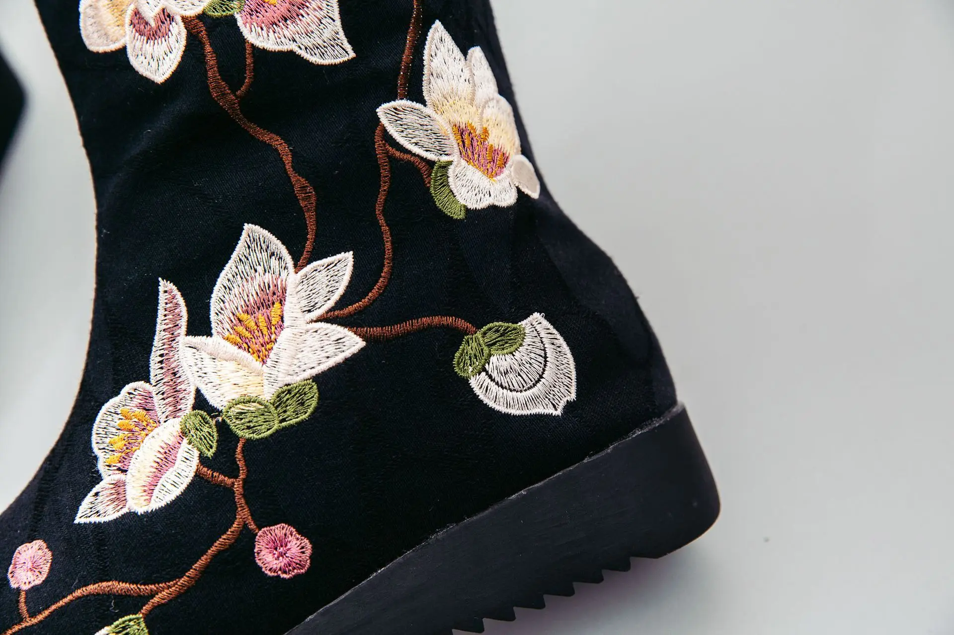 Теплые зимние хлопковые туфли в китайском стиле с ручной вышивкой и бархатной подкладкой, костюм для косплея Hanfu, Женская хлопковая обувь средней длины