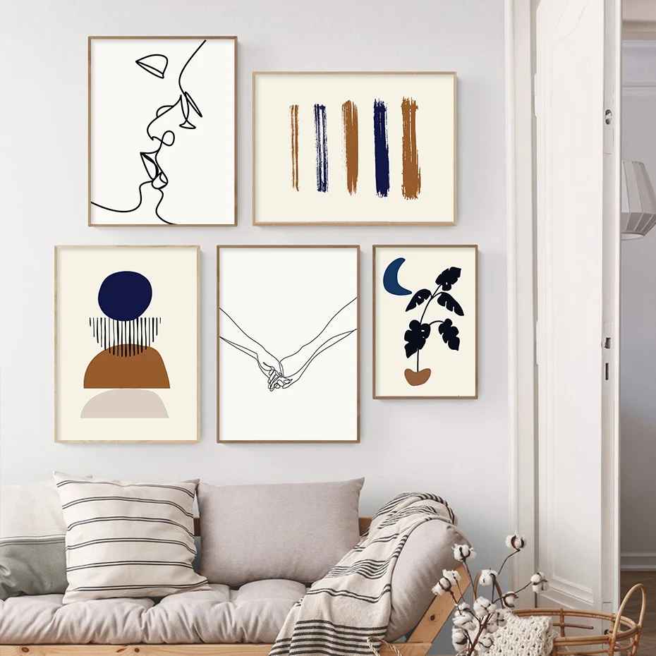 Абстрактная поцелуй в стиле бохо, ручной минималистичный плакат, Геометрическая Картина на холсте, Настенная картина, картина для гостиной, современный домашний интерьер, Декор