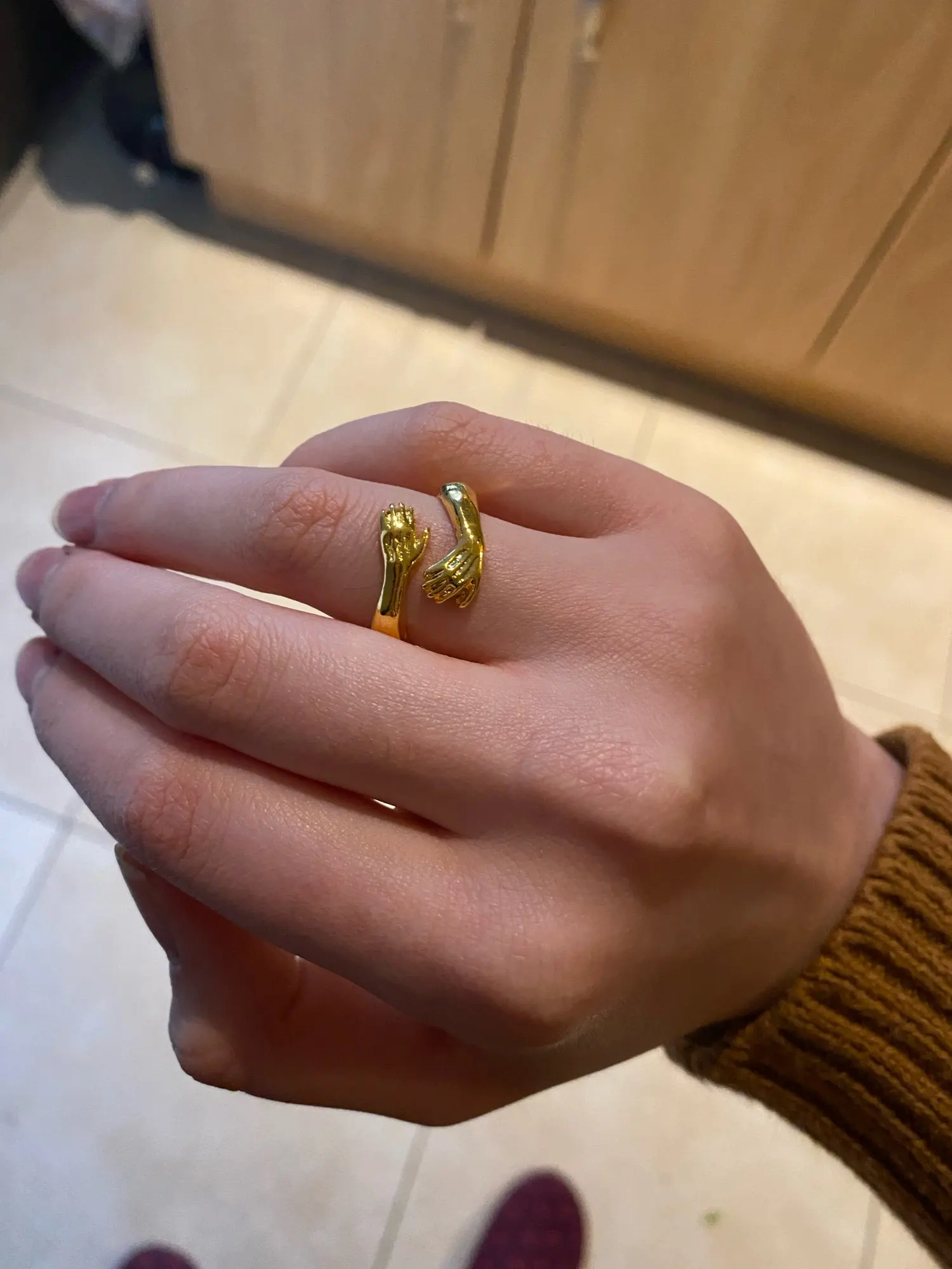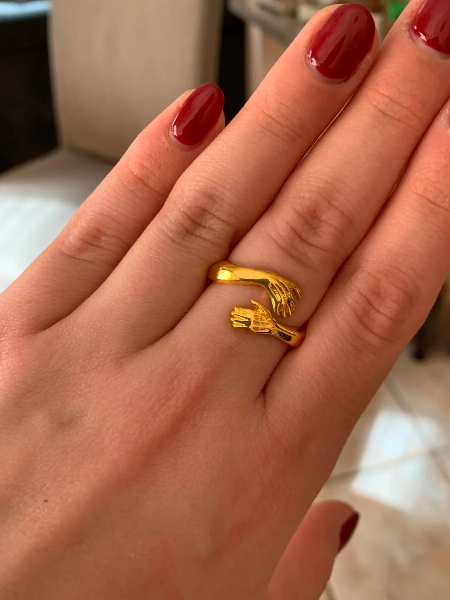 кольцо ну оочень огромное и громоздкое, носить не удобно,и металл очень дешево смотрится,думала хоть чуть будет похоже на зодото,но нет.но доставка быстрая, спасибо и на этом