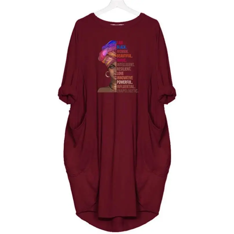 Женское платье с длинным рукавом I Am Black, винтажное платье из 2021 хлопка в африканском стиле, одежда, лето 100%