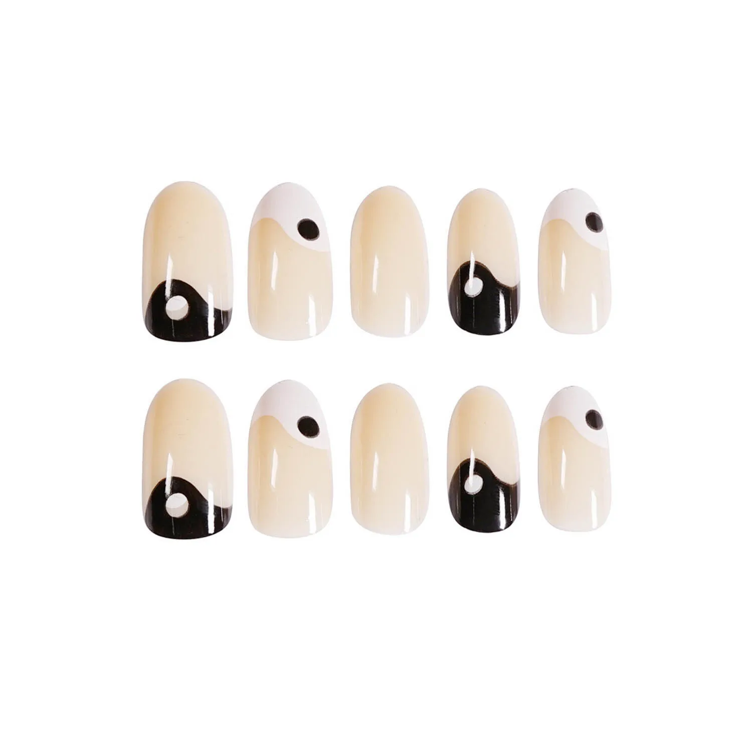 24 шт.кор. Тай Чи бело-черные носки ногтей готовой поддельные накладных ногтей: овальная головка Предварительно Дизайн акриловый Фрезер для ногтей cо шлифовальными советы для девушек
