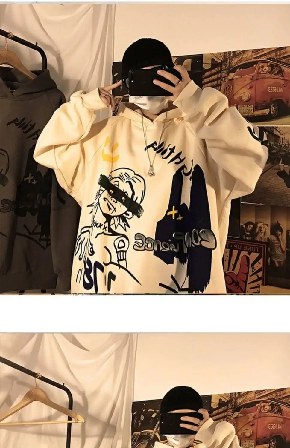 Мужская Флисовая Толстовка в гонконгском стиле на осень и зиму, мужской пуловер, корейские толстовки для студентов, свободная одежда унисекс для пары, Топ