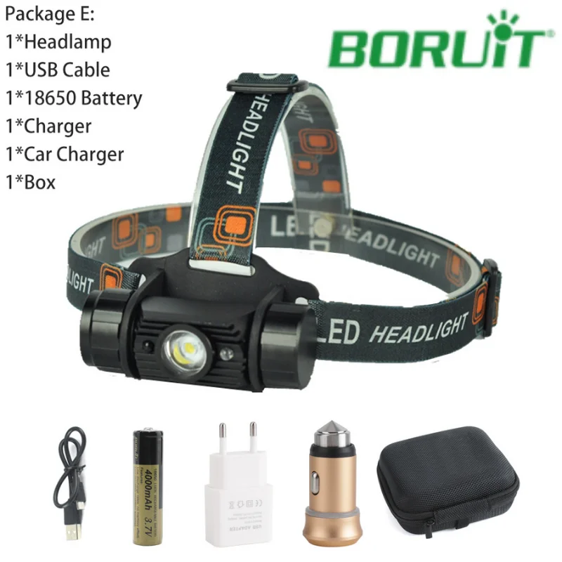 Налобный фонарь BORUiT, светодиодный, 18650 лм, с ИК датчиком движения
