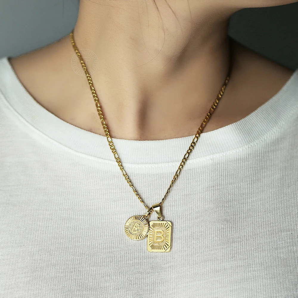 Колье унисекс, из нержавеющей стали, с подвеской в виде букв, 18 дюймов, 2 шт.