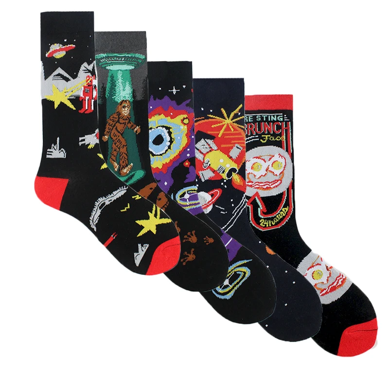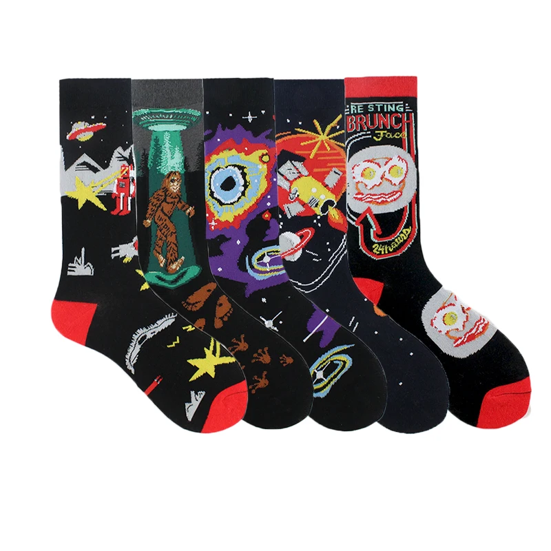 Новый космический корабль пришельцы космонавты смешные мужские носки Высокое качество хип-хоп Harajuku планета счастливый унисекс носки Hombre мужские сокены