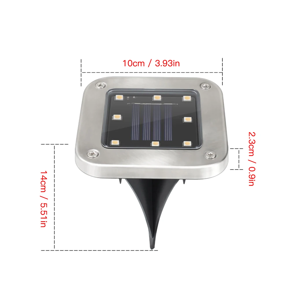 Особенности:* 1. Новая солнечная лампа: светодиодный дисковый светильник состоит из 8 светодиодный ламп с теплым светильник. Специальный квадратный дизайн может предоставить больше вариантов для украшения вашего двора, лужайки, дорожки, сада, подъездной дорожки, террасы и палубы.* 2. Солнечная энергия: нет электричества. Встроенная солнечная панель будет автоматически заряжаться солнечный светильник в течение дня и будет светильник в течение 8 часов после полной зарядки. Пожалуйста, установите его в солнечном месте. (Зарядка и рабочее время будут меняться в зависимости от погоды)* 3. Светильник-Датчик: Встроенный светильник-датчик предназначен для автоматического включения в темноте или ночью и автоматического выключения в дневное или яркое время. Нажмите кнопку переключения в нижней части продукта, чтобы выключить дисковую лампу вручную. Идеально подходит для использования на открытом воздухе, таких как сады, колоды, дорожки, тротуары, бассейны и кемпинги.* 4. Водонепроницаемый дизайн: IP65 Водонепроницаемый и основной корпус из нержавеющей стали позволяют эффективно изолировать воду и туман с помощью внешнего водонепроницаемого переключателя (вместо выключателя pinhole). Не беспокойтесь о сильном дожде, снегу, морозе или санях.Описание:Экологически чистые солнечные лампы будут включаться ночью и в темноте и заряжаться днем или в светлых местах.Эффективность преобразования энергии достигает 17%, что означает, что она может преобразовывать больше энергии для освещения, что очень полезно для экономии ресурсов Земли.Долгие рабочие часы-наши продукты оснащены перезаряжаемыми никель-водородными батареями емкостью 600 мА · ч, которые могут заряжаться от солнечной энергии.При полной зарядке наземная лампа может работать в течение 8 часов. Даже в случайные дождливые и пасмурные дни, он может поддерживать непрерывное и хорошее освещение.Водонепроницаемый и прочный-корпус нашей продукции изготовлен из нержавеющей стали + PP водонепроницаемого материала. Его можно использовать на открытом воздухе и в помещении.Примечание:1. Перед использованием Откройте кнопку включения на задней панели.2. Пожалуйста, установите его в месте с большим количеством солнечного света в течение дня.3. Держите солнечную панель чистой и полностью заряженной.Спецификация:Емкость аккумулятора: 600 мАч Ni-MH аккумуляторВремя зарядки: 8 часовВремя работы: 8 часовЧехол Материал: нержавеющая сталь + ППРазмер изделия: 10*10*14 смФорма изделия: квадратнаяСписки:1 или 4 * подземная лампа1 * Руководство по эксплуатацииПримечания:1. Реальный цвет товара может быть s светильник ly отличаться от изображений, размещенных на веб-сайте, по причине многих факторов, таких как яркость вашего монитора и светильник яркость.2. Возможны незначительные отклонения в измерениях вручную.