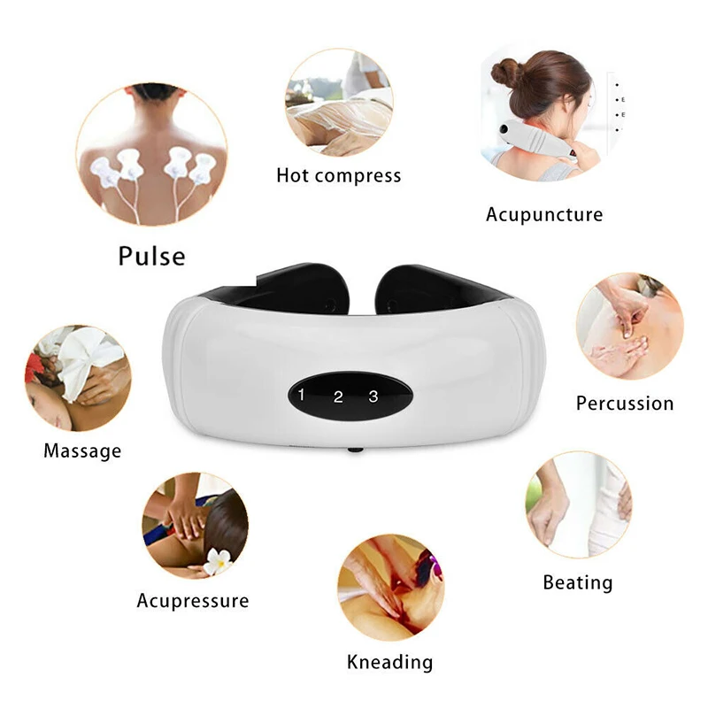Электрический массажер для шеи и импульсной спины, 6 режимов, контроль мощности, инструмент для облегчения боли с инфракрасным обогревом, аппарат для расслабления здоровья